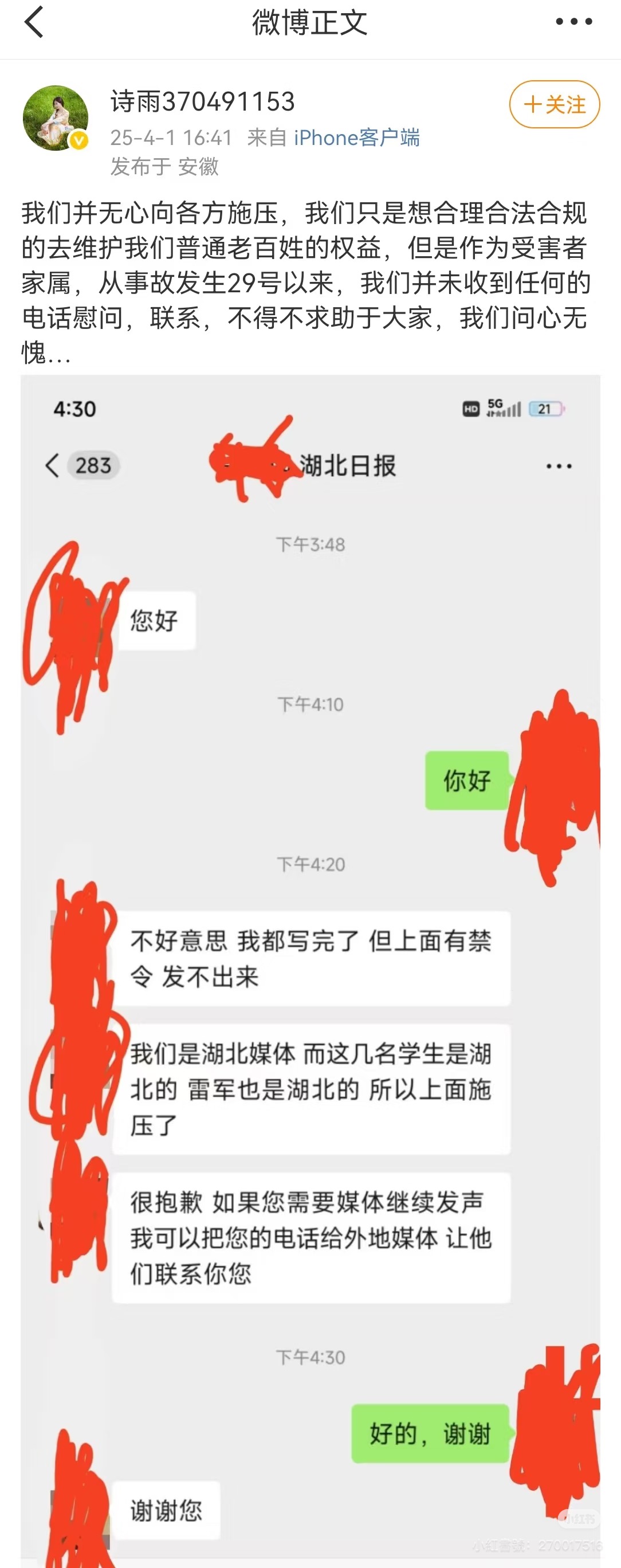 【#小米SU7高速事故家属发声#:女儿本来要去外地参加考试】近日,小米SU7高速碰撞爆燃事故引发关注。死者罗某的父亲告诉@中国新闻周刊,3月29日晚,在湖北上大学的女儿驾车和2名室友前往安徽池州,准备参加次日的事业编考试,不料遭遇事故,车内3人不幸身亡。据其介绍,女儿2022年拿到驾照后,一直开家里的油车,去年其男友购买小米SU7后,由罗某一直驾驶使用该车,曾从湖北开到广东。他表示小米方面未联系过家属,“每次都是客服回应已经上报,没有任何人跟我们接触。”#SU7爆燃遇难者父亲称小米仍没来联系#