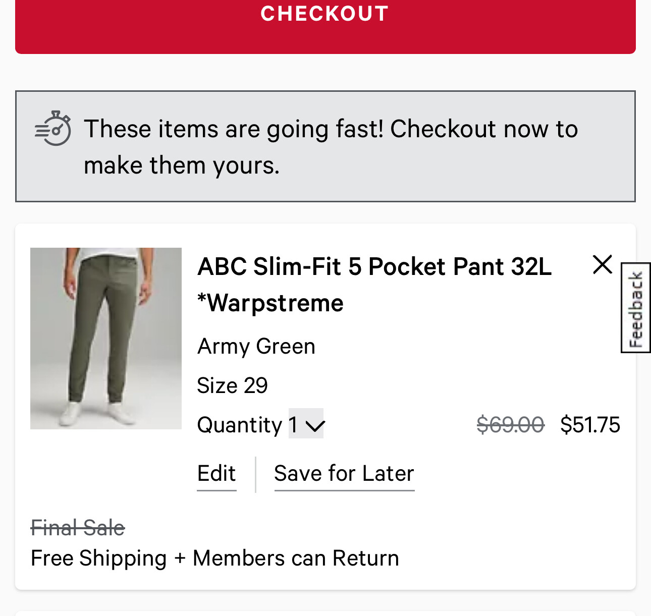 比如这个裤子原价$128,折扣到$69,叠加sweat 75折$51.75。
