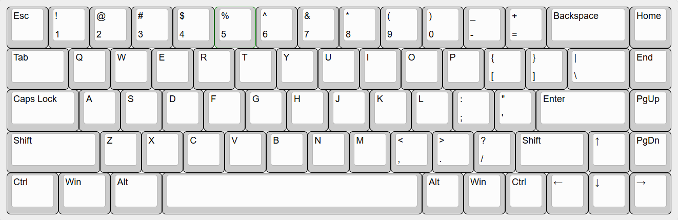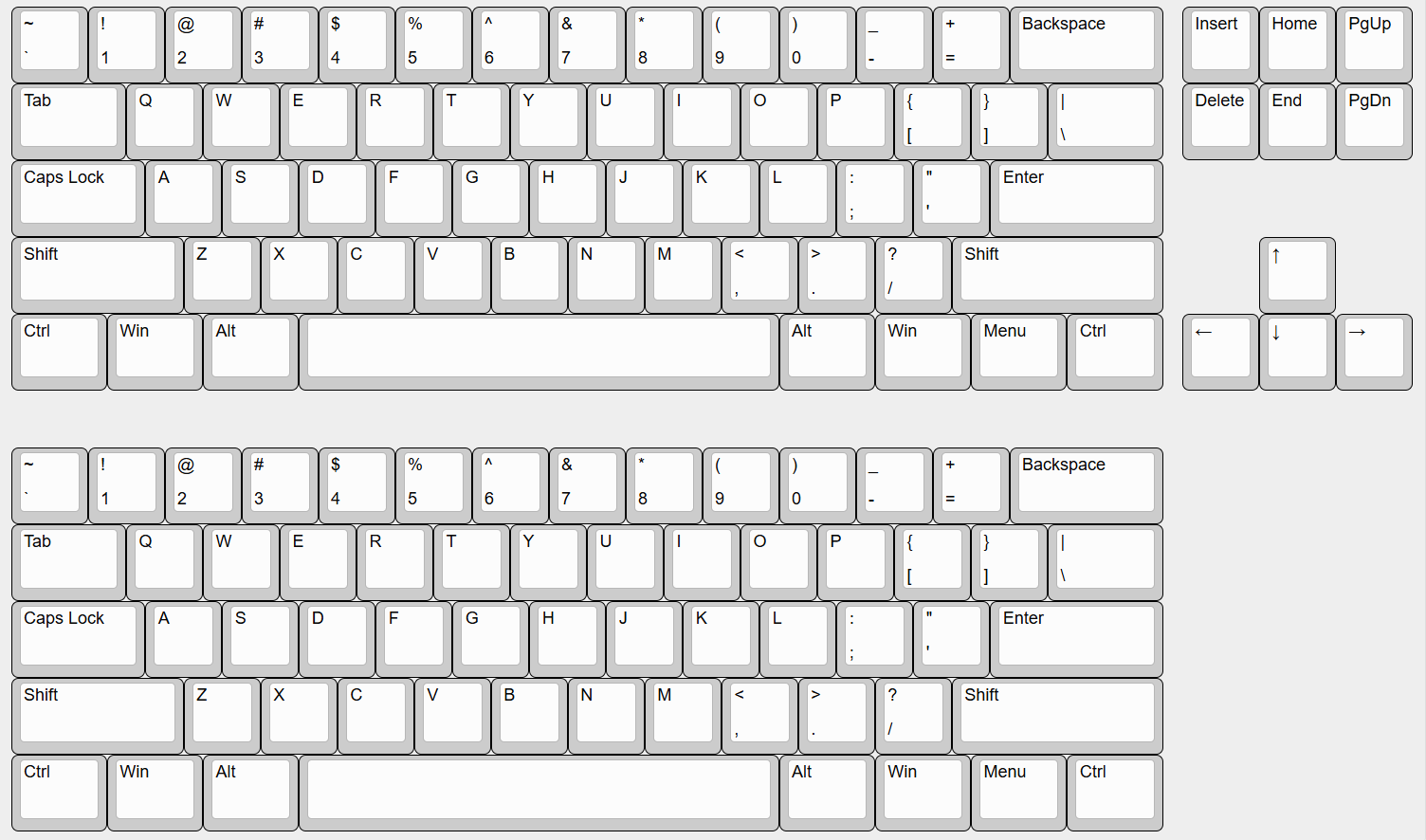 其中,65%和75%以其方向键向左嵌入主键区,压缩Shift和Ctrl长度为主要特征,也可以称为紧凑型排列;而相对小众的60%(例如Wooting)和70%指的则是截然不同的两种松散型排列: