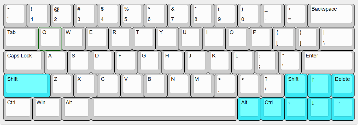 有些人觉得65%还不够紧,将Shift行左移0.25U后挤出了比较反直觉的左移64配列: