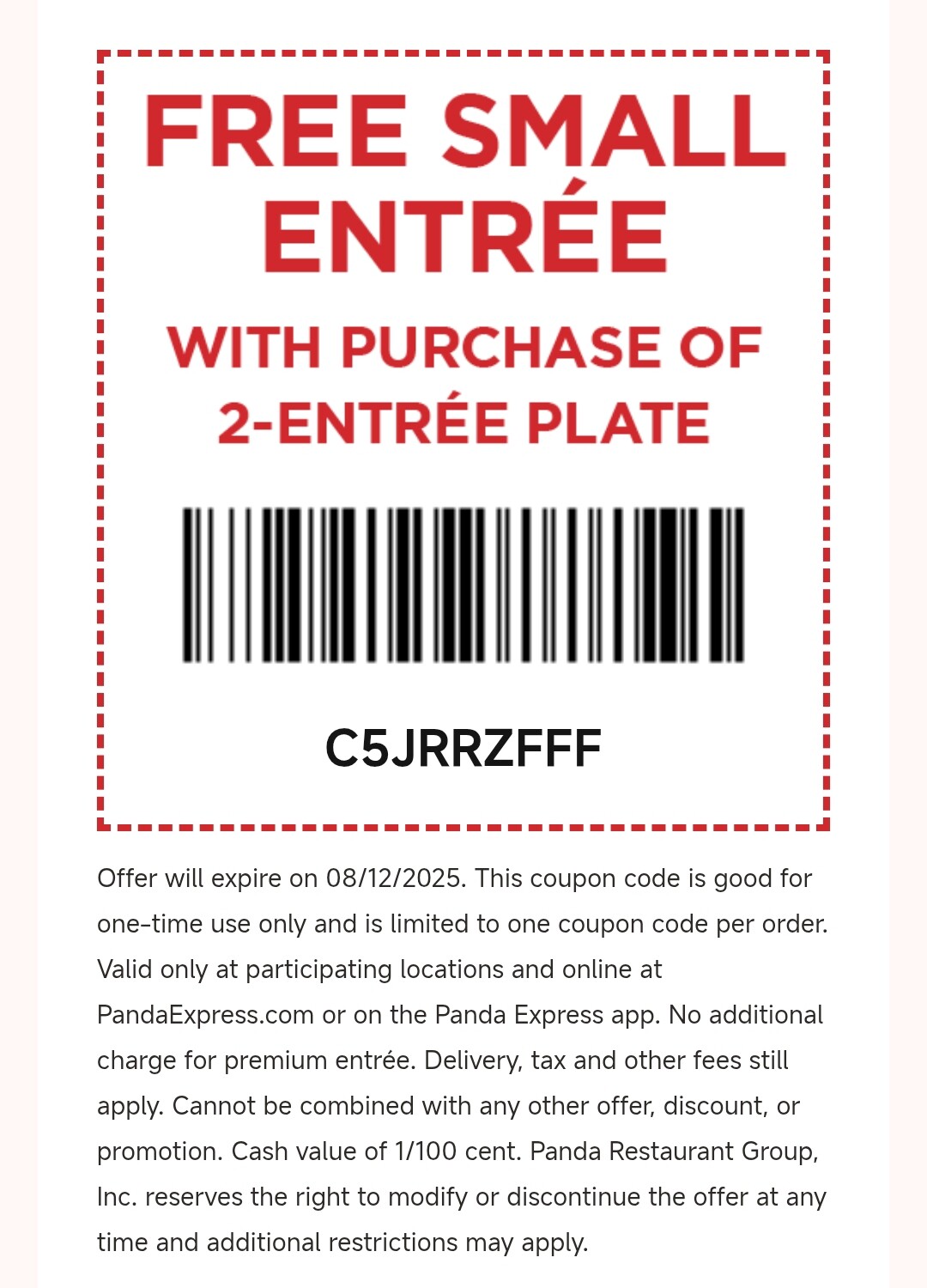 我发现 Panda Express Survey 只要随便填写订单号+店铺号 连续点击几下(前两次会提示失败) 都能顺利进入问卷页面领coupon 再也不用担心coupon过期了