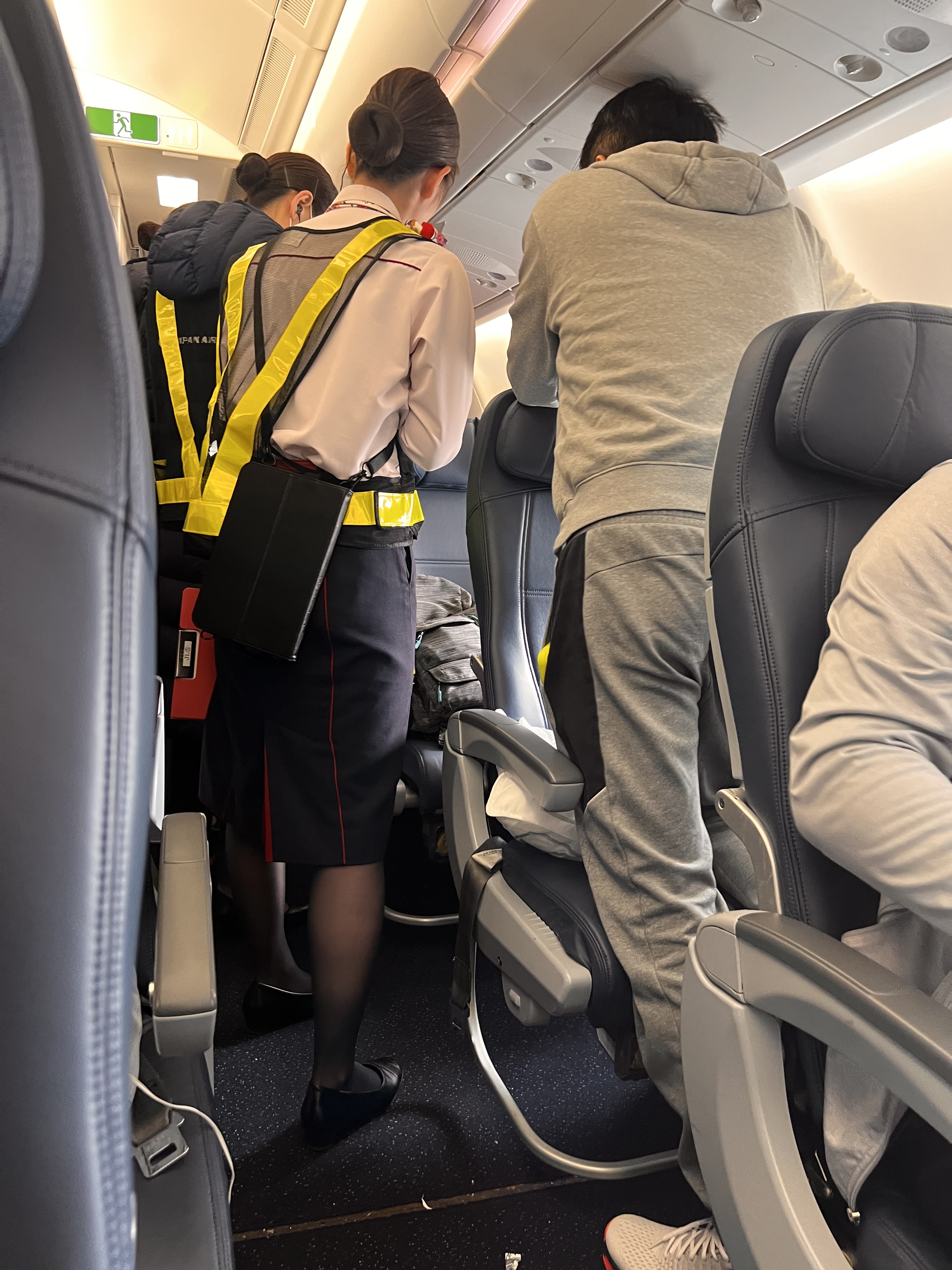 机上有个人突然晕过去了,以前只在新闻里看到过,这次亲眼遇到真的有点吓人……迫降的时候飞机又超级晃,差点没吐出来。