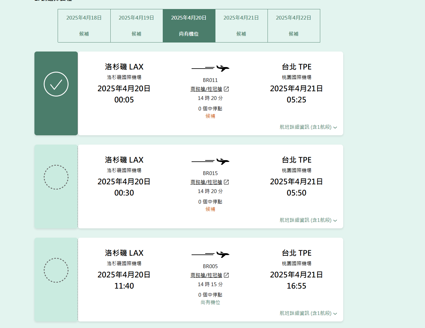 票代会占一些票 所以 大家可以某书问票代 问某个具体行程 比如台北飞Lax sfo sea jfk 四月底什么时候有票 or美国飞上海 如果是台北转机呢 票代为了出票 肯定会告诉你哪些日期 还有航班发你 你也可以直接问如果是长荣的话什么时间ok 这样就能获取到票代占的航班 因此 你可以把那个日期的票先订下来