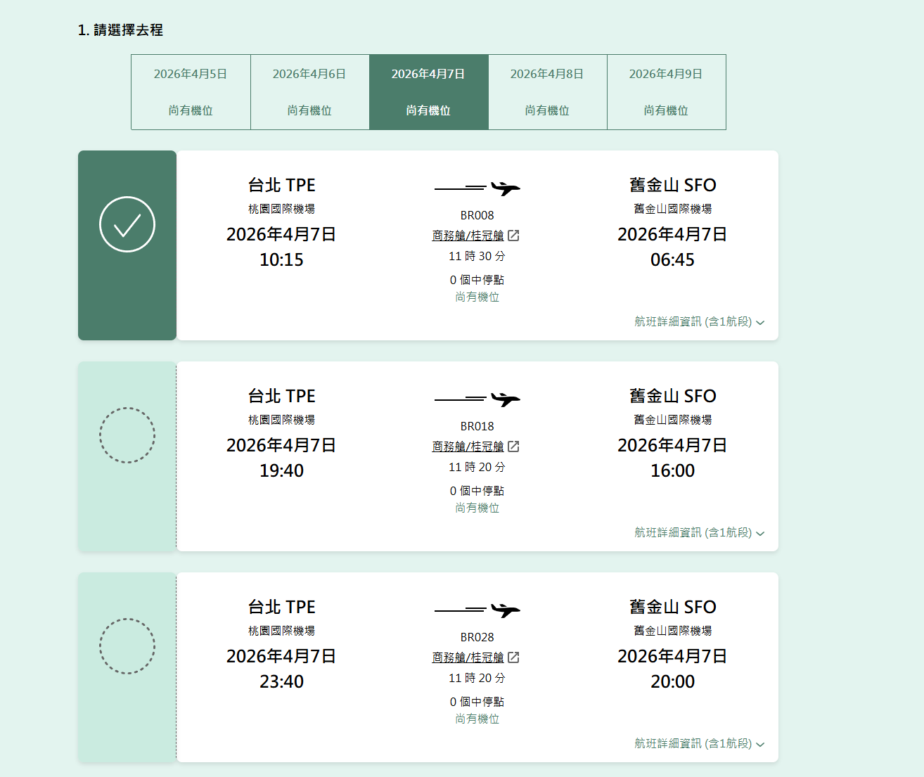长荣的里程票放票很多 而且预定远期 一年左右的基本有票 (图中显示的都是2+ 因为我是两张票一起看的)