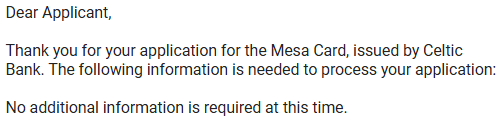 PS: 2工作日之后,收到邮件 “welcome to the Mesa Homeowners Card!“,应该是批了.