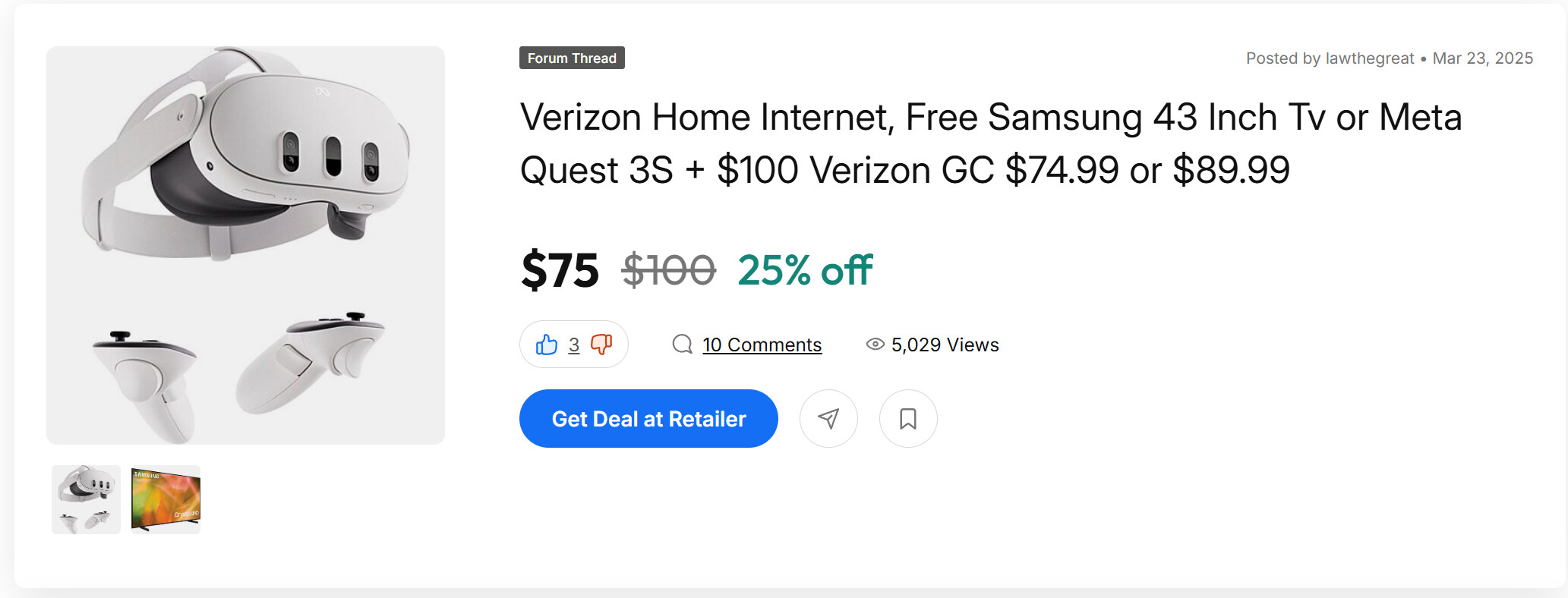 Verizon Fios 会时不时会放出来一些New customer sign up deal 比如