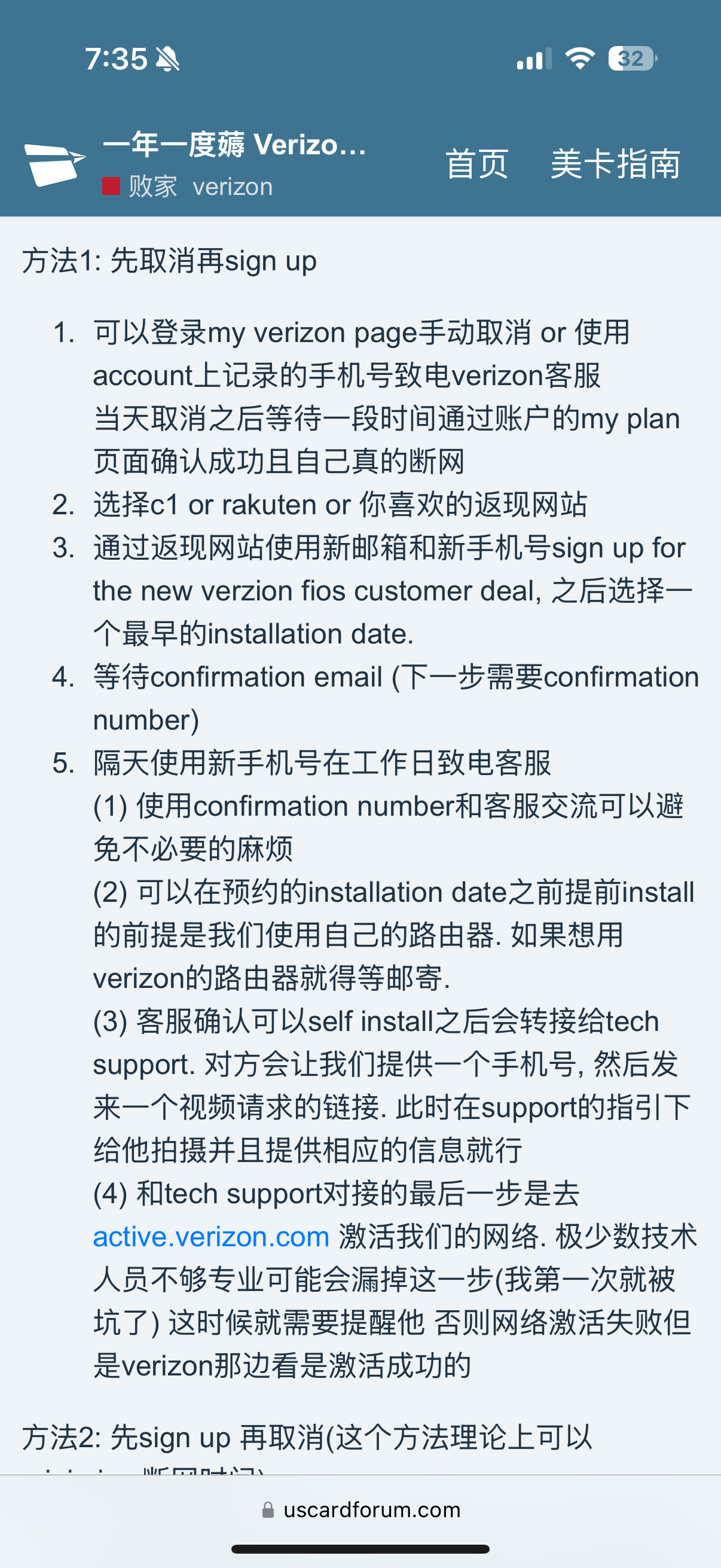 (4) 和tech support对接的最后一步是去 active.verizon.com 激活我们的网络. 极少数技术人员不够专业可能会漏掉这一步(我第一次就被坑了) 这时候就需要提醒他 否则网络激活失败但是verizon那边看是激活成功的