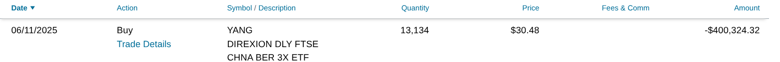 这周后面计划做空,看情况买入ETHD, YANG, TZA。今天先入了60万的ETHD,明后天择机加仓。