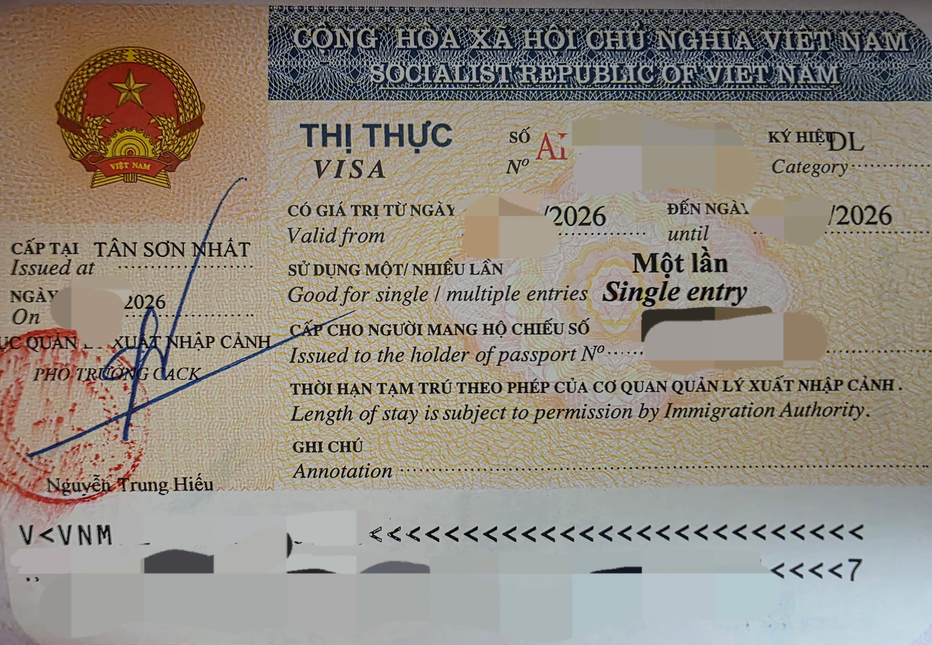 越南这个是贴在护照上的吗