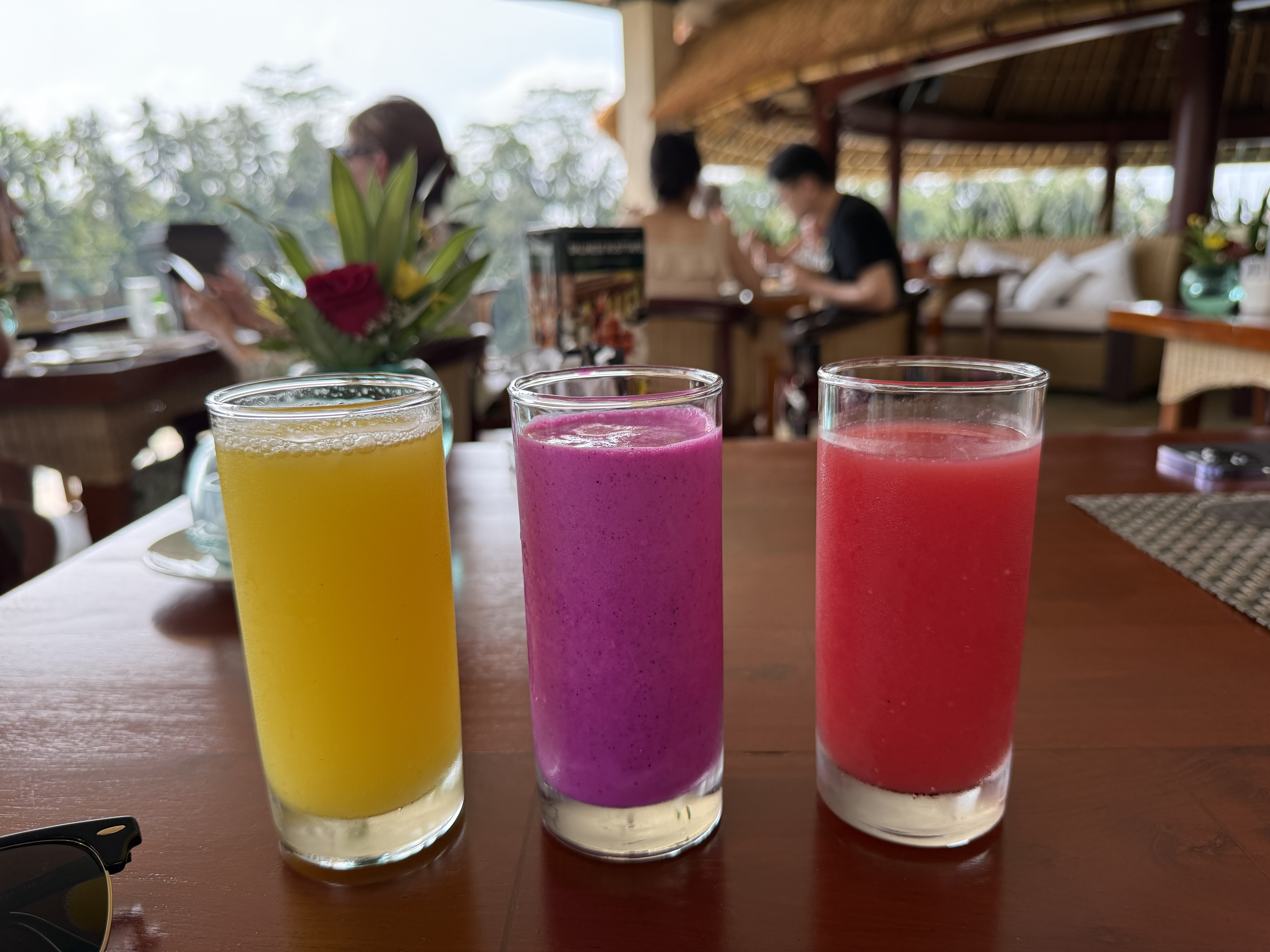 在Umana住了两晚后,我们打车两小时来到乌布,入住Viceroy。第一晚没升级,房间老旧、空调不给力,睡得很差。第二天被升级到Deluxe房型,整体体验好了不少。早餐为A La Carte形式,种类虽少,但味道尚可。相较之下,我觉得住两晚足矣。乌布除了猴子森林,对我而言并无太多可逛。