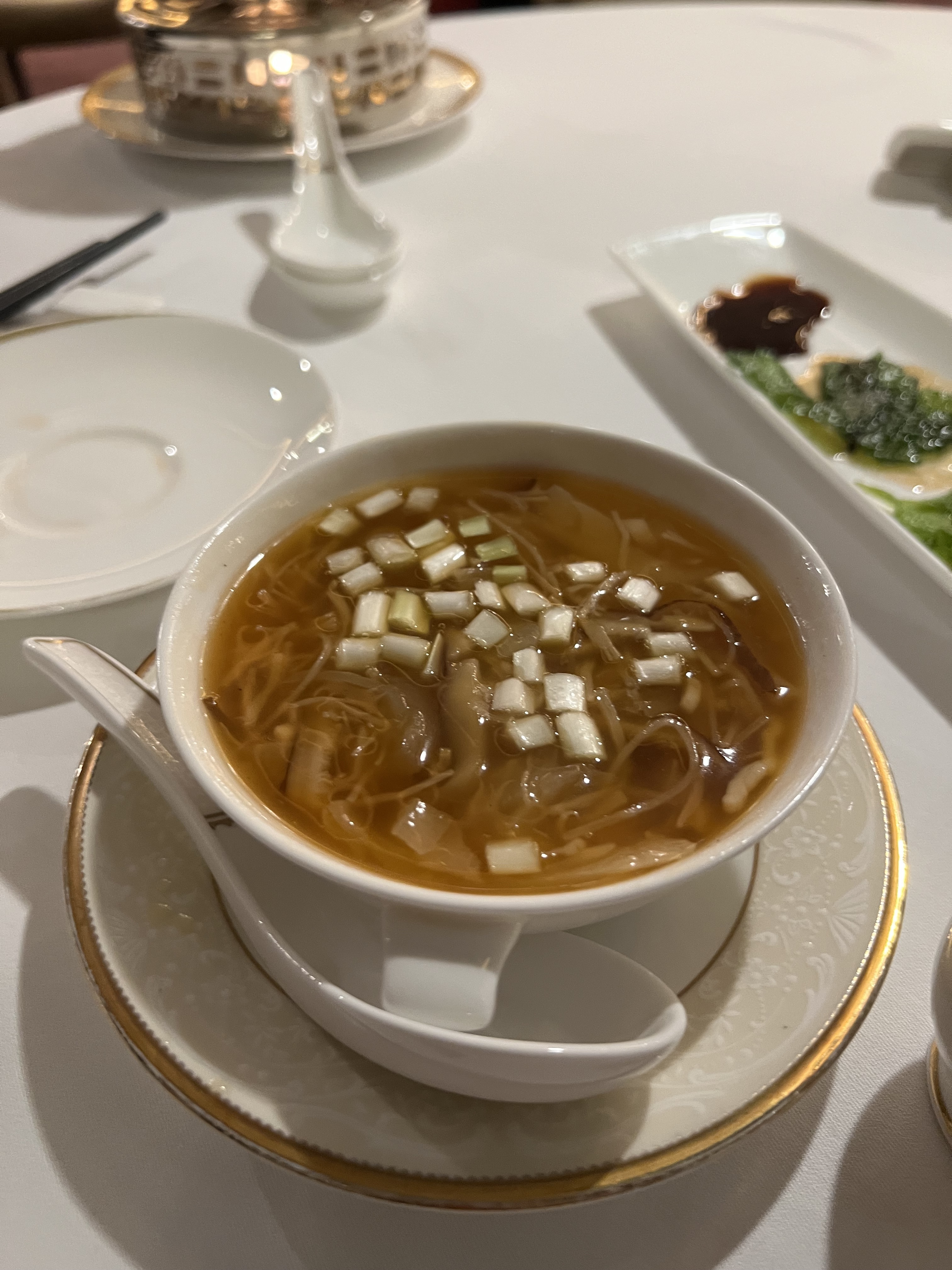 下午我们收拾好行李,在港珠澳大桥口岸坐上了去往香港的大巴。 用FHR定的Langham位置很不错,公交车下来走几分钟就到了酒店门口,因为100刀的credit可以用在唐阁,刚好我也想尝尝蝉联这么多年的米其林三星的中餐到底如何。晚餐就在酒店解决了。不过耐不住服务员的推销,我们俩点了一千多HKD 的菜,虽然整体味道还可以,但没想象中那么好吃哈哈哈,妥妥被反薅了。