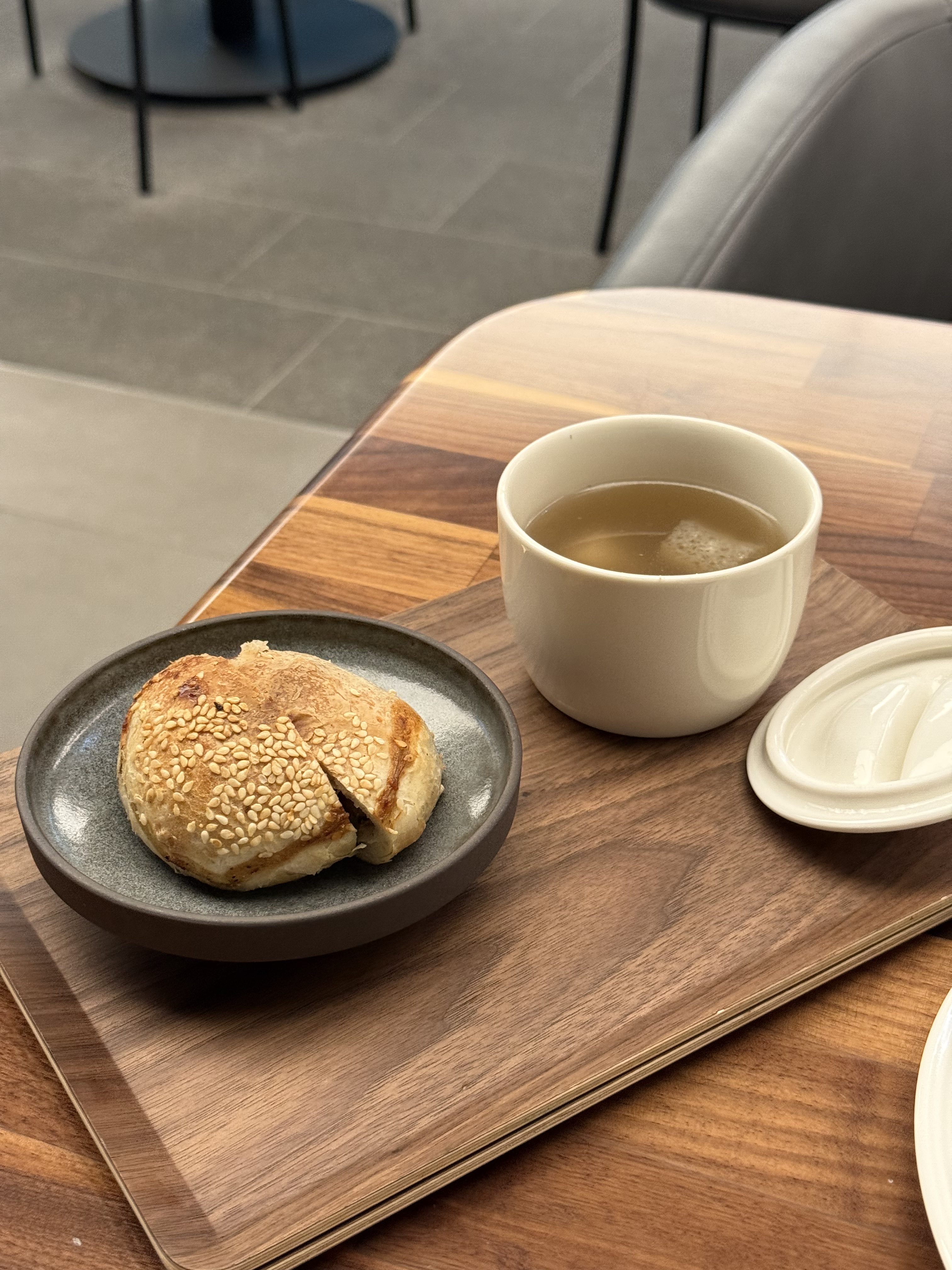 去巴厘岛的飞机是第二天一早,在酒店吃过早餐后,我们就坐上去往机场的公交车,路程比想象中快很多,半个小时就到了机场。安检之后我们还有大概一小时的时间去休息室打发时间,我喝了好几杯cathay delight,后面闲逛发现休息室深处还有个品茗的地方,俩人就各自要了两壶茶尝了尝。