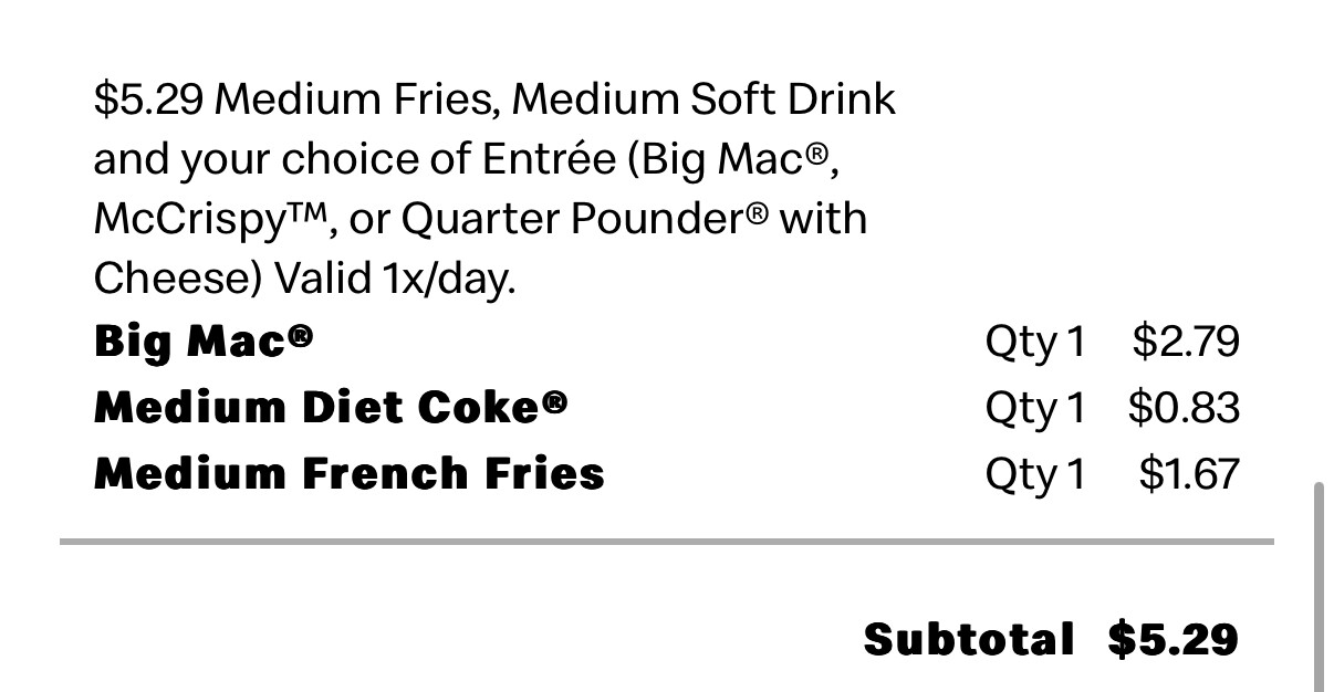 5块3的大M套餐和隔壁大B的9块钱双飞堡每天轮着来