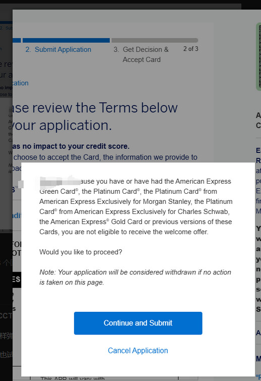 没有弹。其实发生了2次。我P1 被杀完后,马上P2 申请了MS 白金,没有弹,直接pending,收到了带有ref的email,过了一天打电话去,还在pending,我让客服取消了。然后过了2天,我又申请了biz 白金refer 链接,这次也是直接进入pending,没有弹, 但没有收到email 确认。 我马上打电话去,客服说已经秒拒,因为we cancelled a card before. 但我P2并没有被他们取消卡,我猜 we cancelled a card before就是一个杀全家之前的标记。应该是amex 顺藤摸瓜,慢慢标记,慢慢杀。