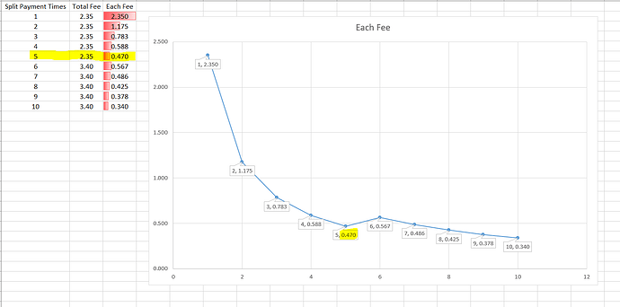 经过@hbxx122333的计算,拆单5次较为可行且费率较好
