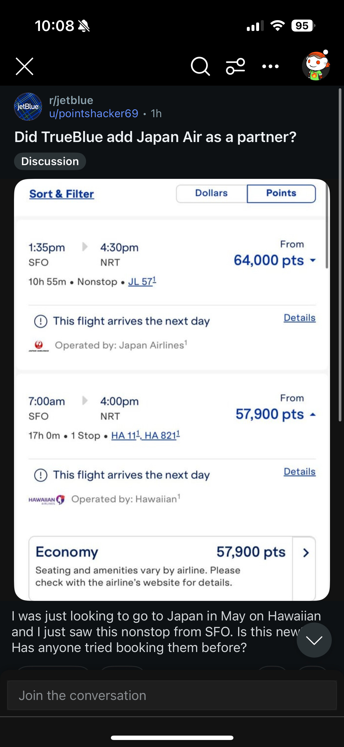 不知道这个能不能用jetblue plus card的10% point back,如果能的话真的太强了相当于直接九折