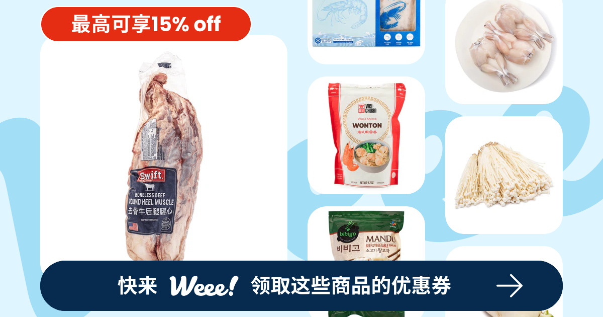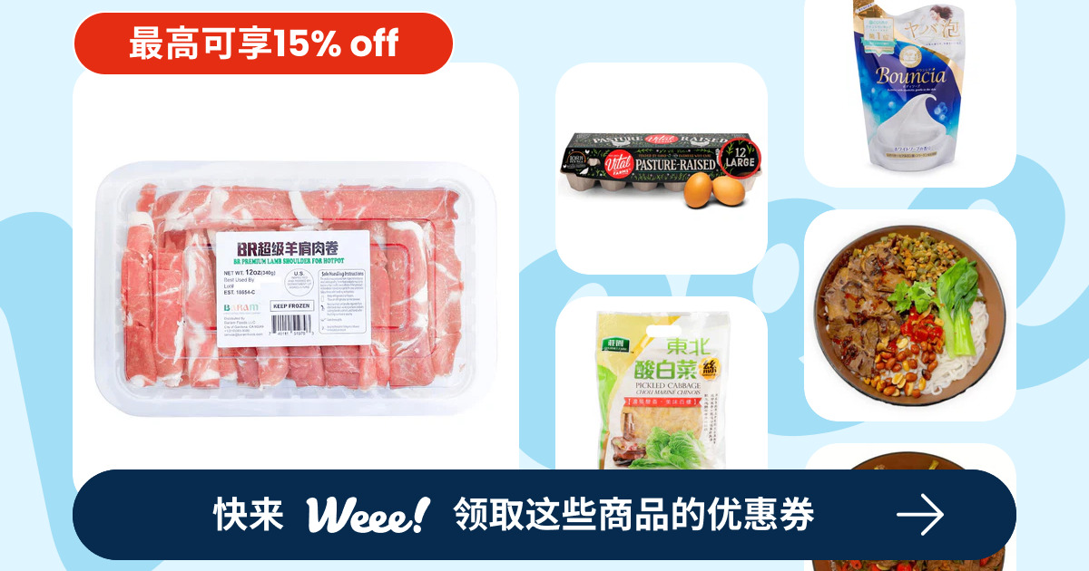 我在Weee!买了这些商品,快来跟我一起下单吧,您可以享受最高15%的折扣!新会员优惠更多哦!