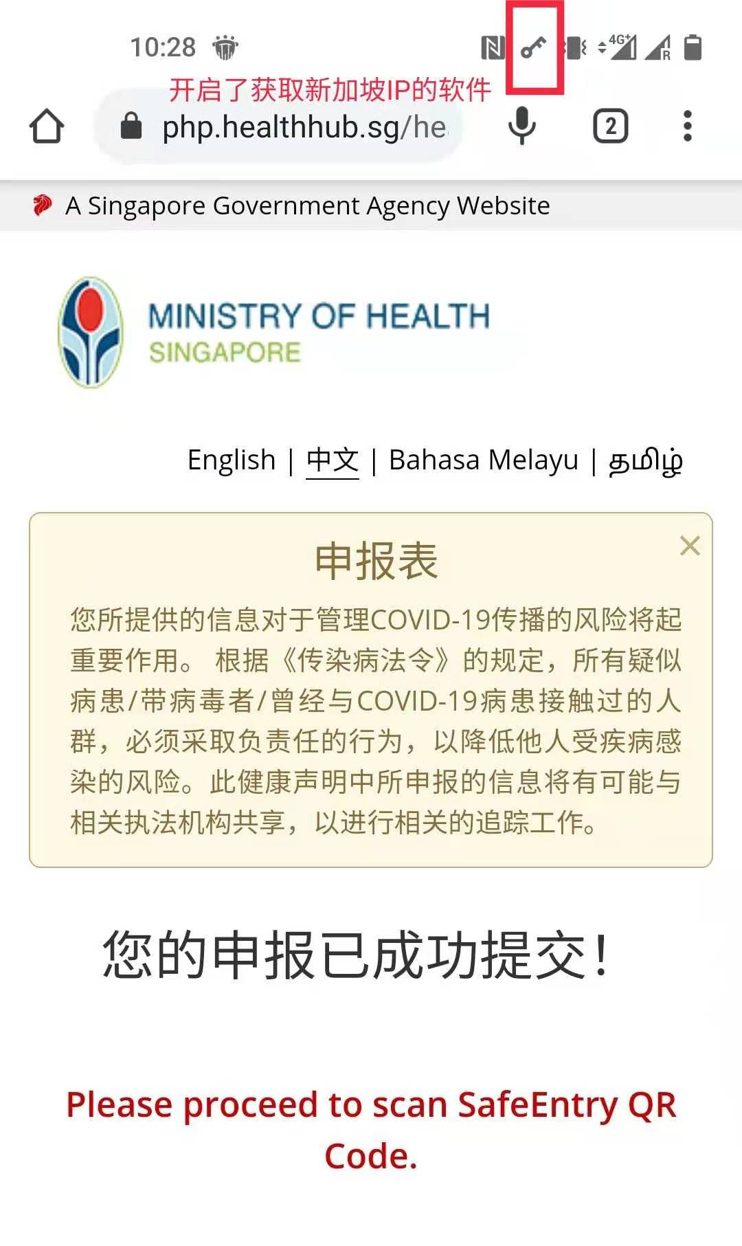 然而,新加坡卫生部提供的电子健康申报表,只允许用新加坡 IP 访问。