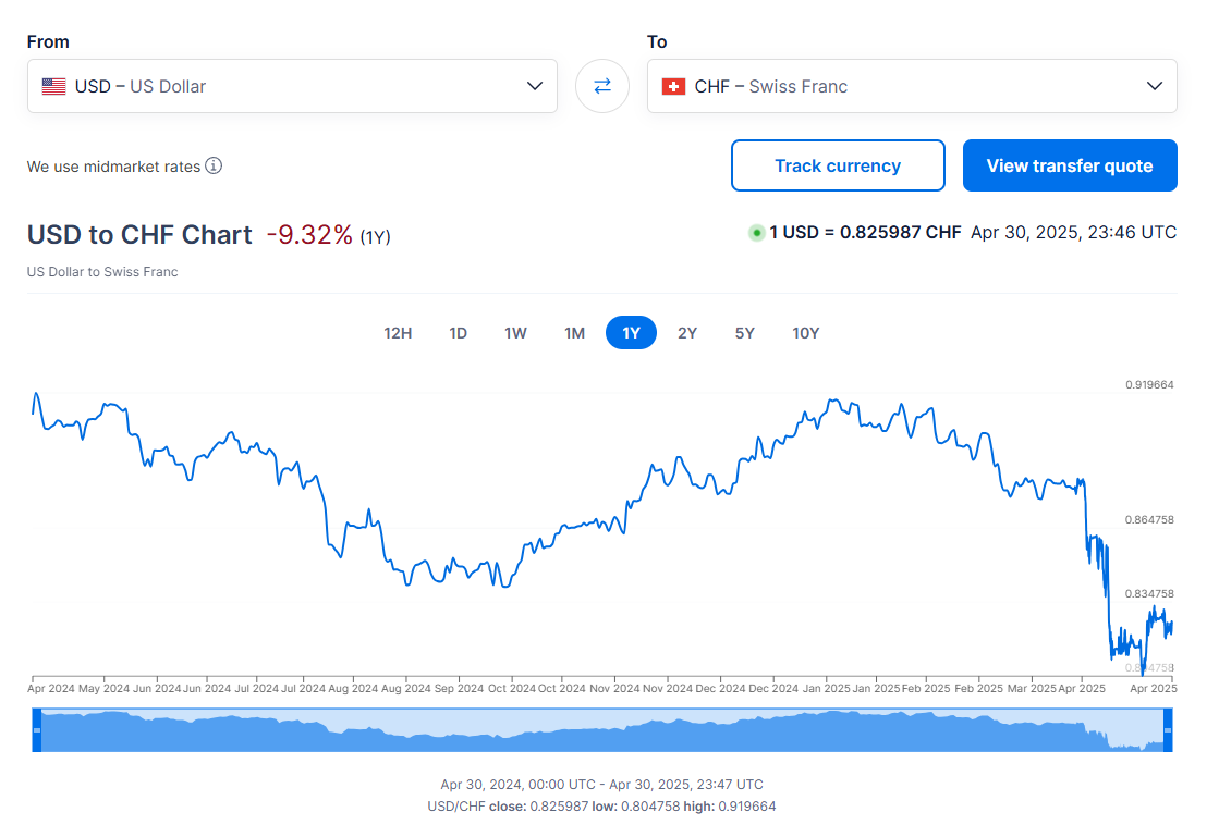 这个操作本质就是利差交易(Carry Trade),会伴随外汇波动风险,如果之后USD兑CHF涨了,实际融资成本会进一步降低甚至盈利;反之,实际融资成本会上升。但是跟4.24%的利差相比,我觉得这个风险可以接受。并且最近USD兑CHF在历史低位,可能是个转换负债的不错时机。