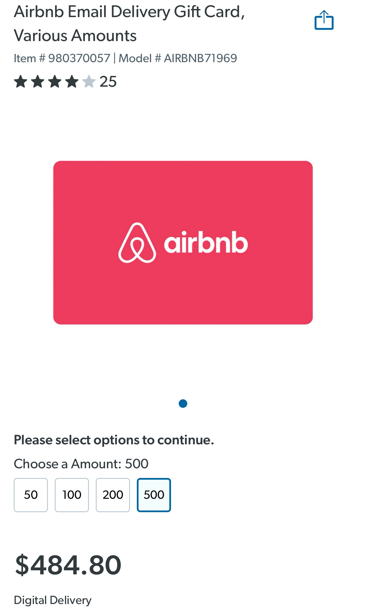人在路上,需要定几天AIRBNB。这两天哪里能买到折扣价的Airbnb egift card呢?