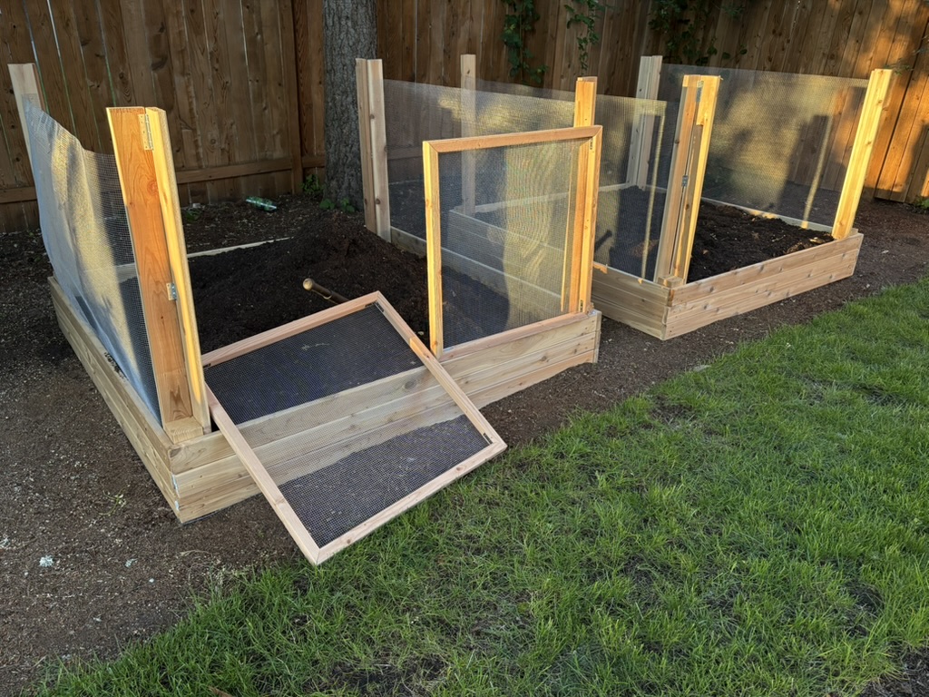 (这次是给第二个菜床做了, 已经升级设备购入了 miter saw 用来切 45 度角, 比纯 circular saw 的那个也没好多少.)