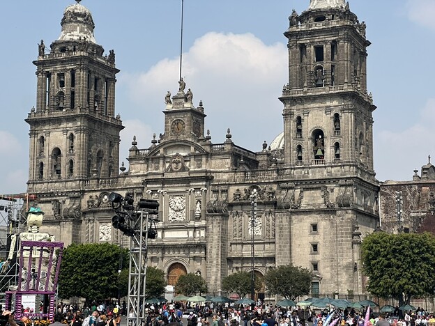 白天的解放广场,依旧人山人海。来这里是为了参观墨西哥城的大教堂。