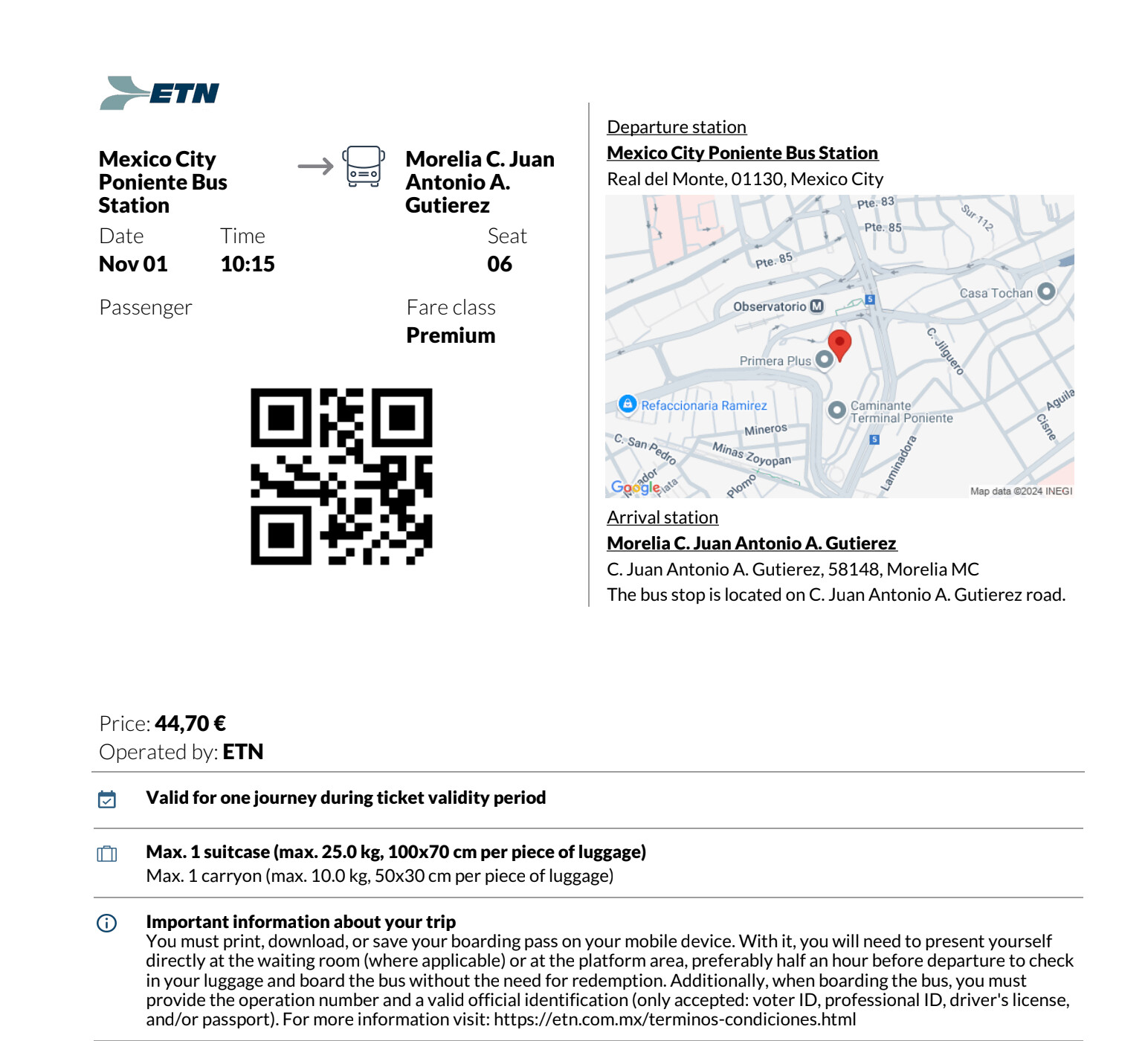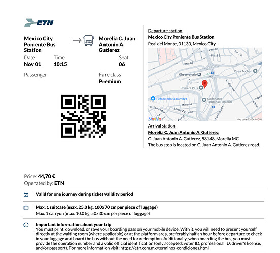 这次选择乘坐的是Mexico City Poniente Bus Station 出发的大巴,目的地是Bus Station of Morelia,全程大约四个小时中间无休息。bus上有卫生间和充电口,而且全程手机90%的时间有信号所以不是太难熬。出发前记得在车站买好水和简单的吃喝以防堵车就好。
