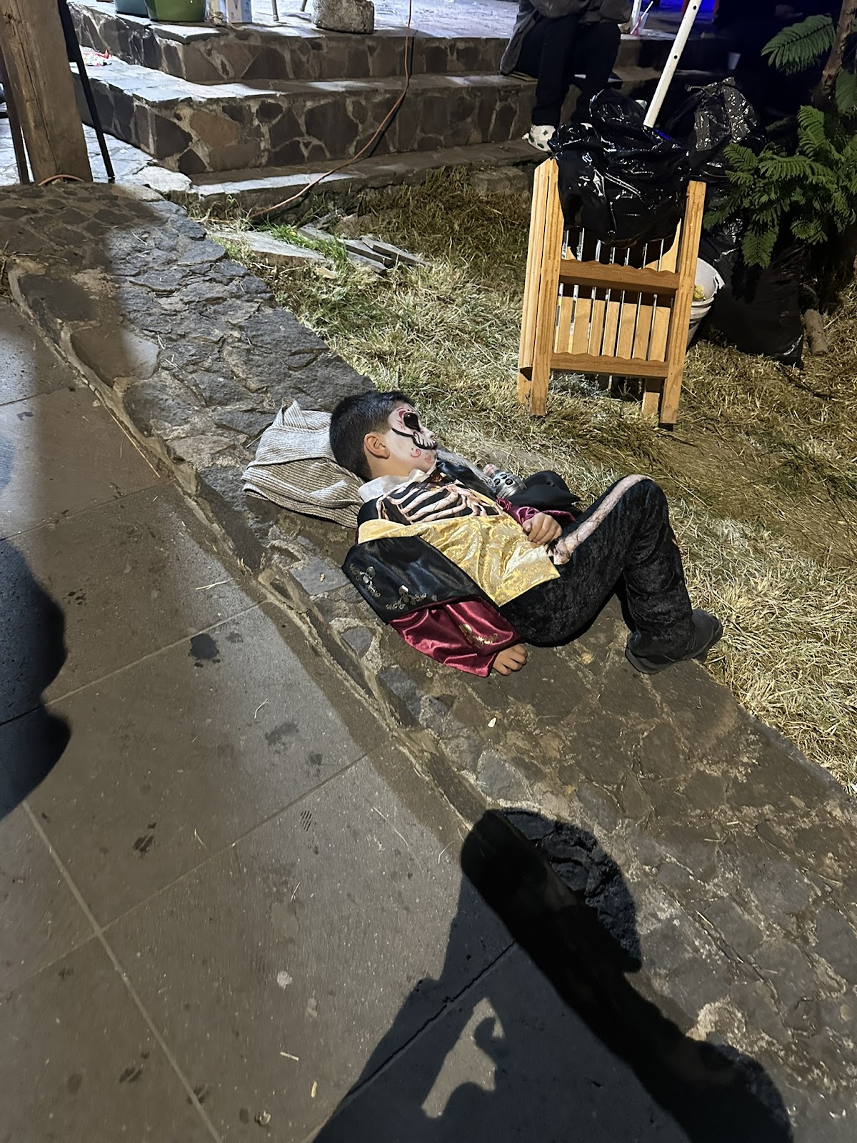 排队过程中路边随地睡下的小男孩。
