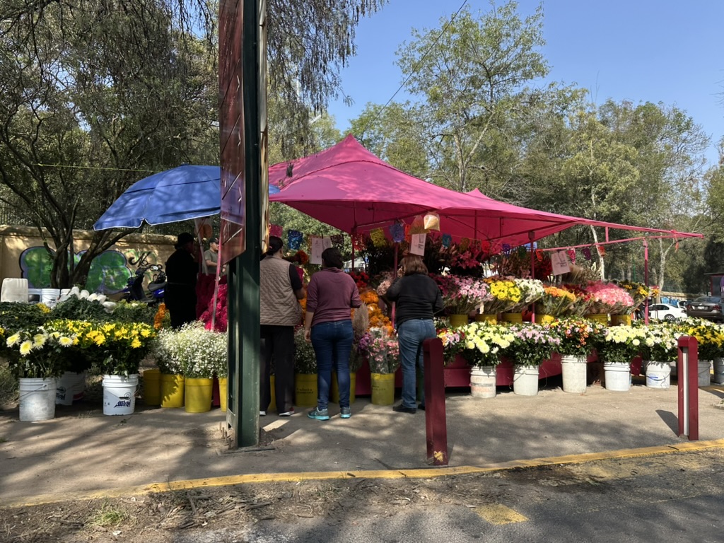 车站前卖花的摊位,亡灵节前夕,所以万寿菊很热销。
