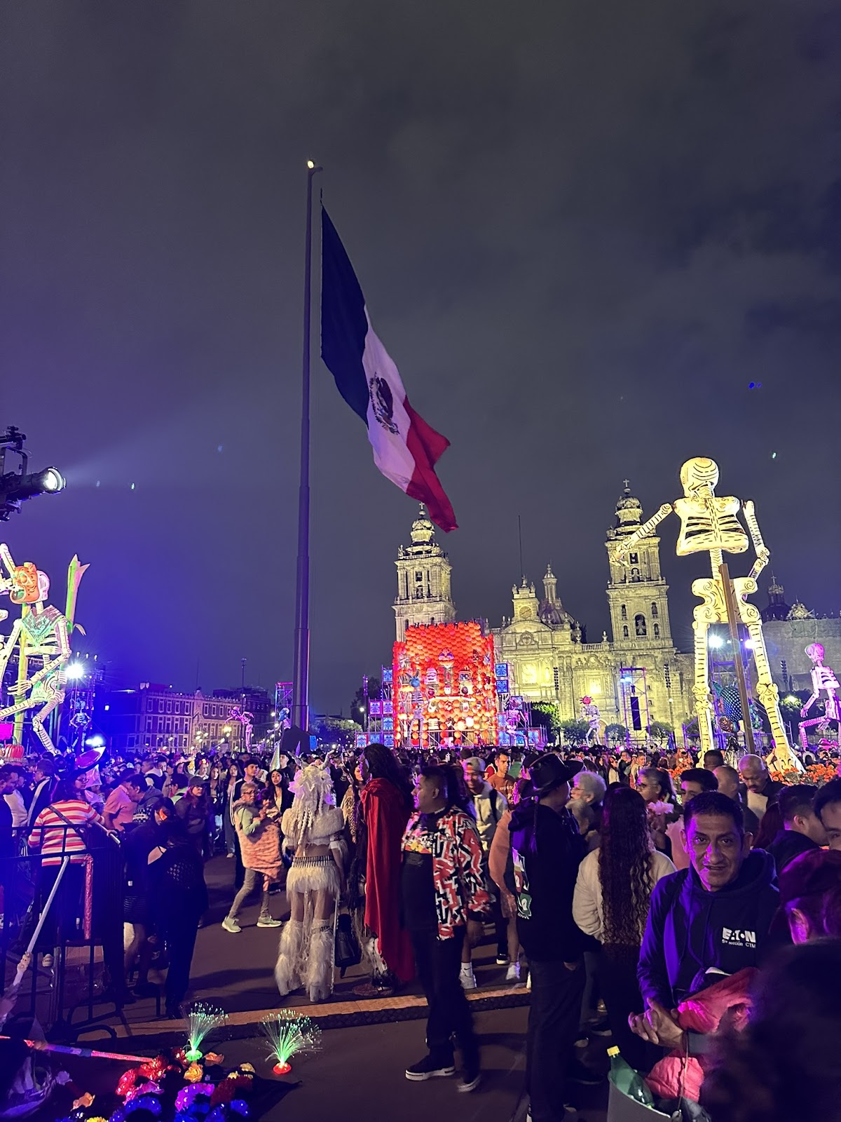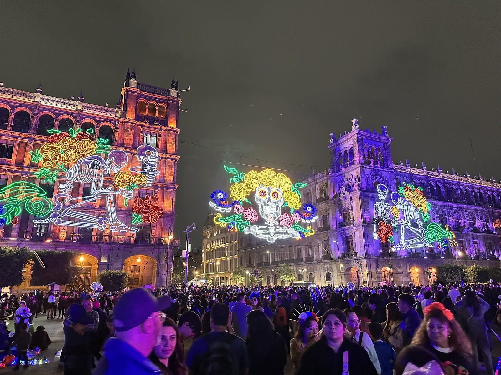 从handshake出来之后 来到解放广场散步,当晚依然是cdmx的亡灵节,走出公交站发现真的是人山人海,基本走不动道。只好把腰包斜挎在胸前保护证件和钱包。当晚又有很多本地老外来找我们合影(我遇到四波人,朋友遇到六波)很多都是带孩子的家长,孩子非常想和我们合影,可能非游客区的劳模很少见到亚洲人吧。