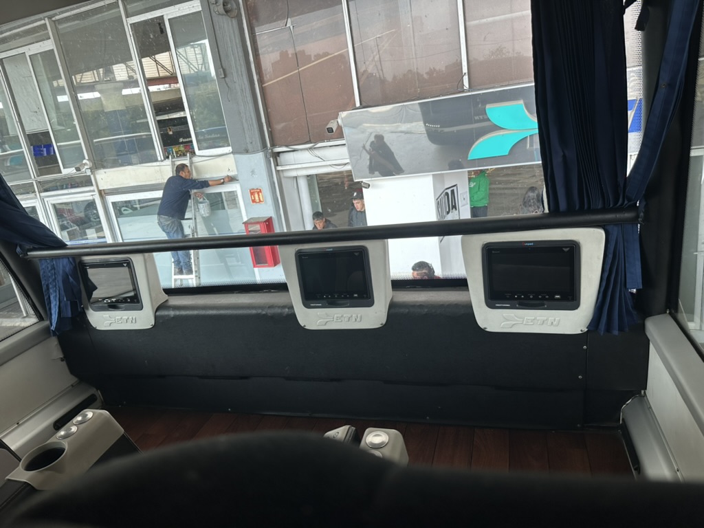 墨西哥因为铁路和航空也不发达,所以当地人出行都是靠这种大巴车。这次选择的是ETN 这个公司的bus,据说是大巴公司种最豪华和舒服的那一个档次。实际体验上也确实不错,四舍五入算是做了一次商务舱。。。