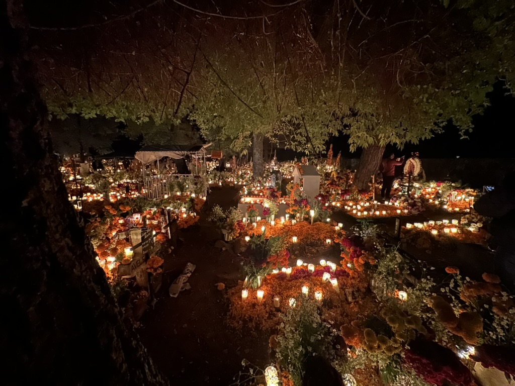 24年十月底,我安排了一次为期四天的深度自由行,前往墨西哥乡村,探访亡灵节的起源地和几个别具特色的景点。我体验了热闹充满节日氛围的墨西哥乡村,死亡女神卡特里娜粘土塑像小镇,探访了亡灵节起源地的湖区小岛,以及装饰各具风格、满载个性纪念品的公共墓地,并欣赏了亡灵节期间墨西哥城(CDMX)绚丽的节日装饰。在这短暂的四天内踏入了《寻梦环游记》中,那个生者与逝者共存的世界。