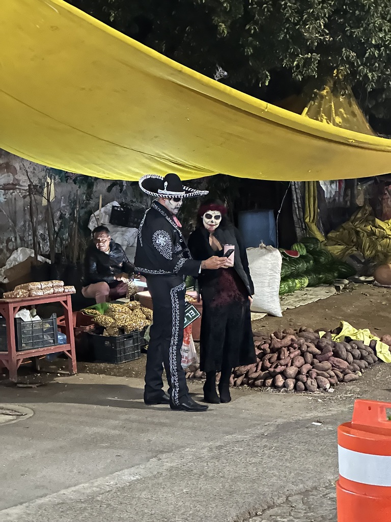 因为亡灵节的日子和万圣节很接近,所以能看到很多小孩儿和青少年穿着西方流行文化的cosplay服,装扮成漫威和美漫的那些角色。让人有点感慨,墨西哥和中南+南美州在大航海时代被西班牙为首的欧洲人殖民过一次,自己的原生文明,印加和玛雅文化,被洗刷殆尽替换成了基督教天主教文化。这美国的文化感染力是不是对他们的第二次文化入侵呢?