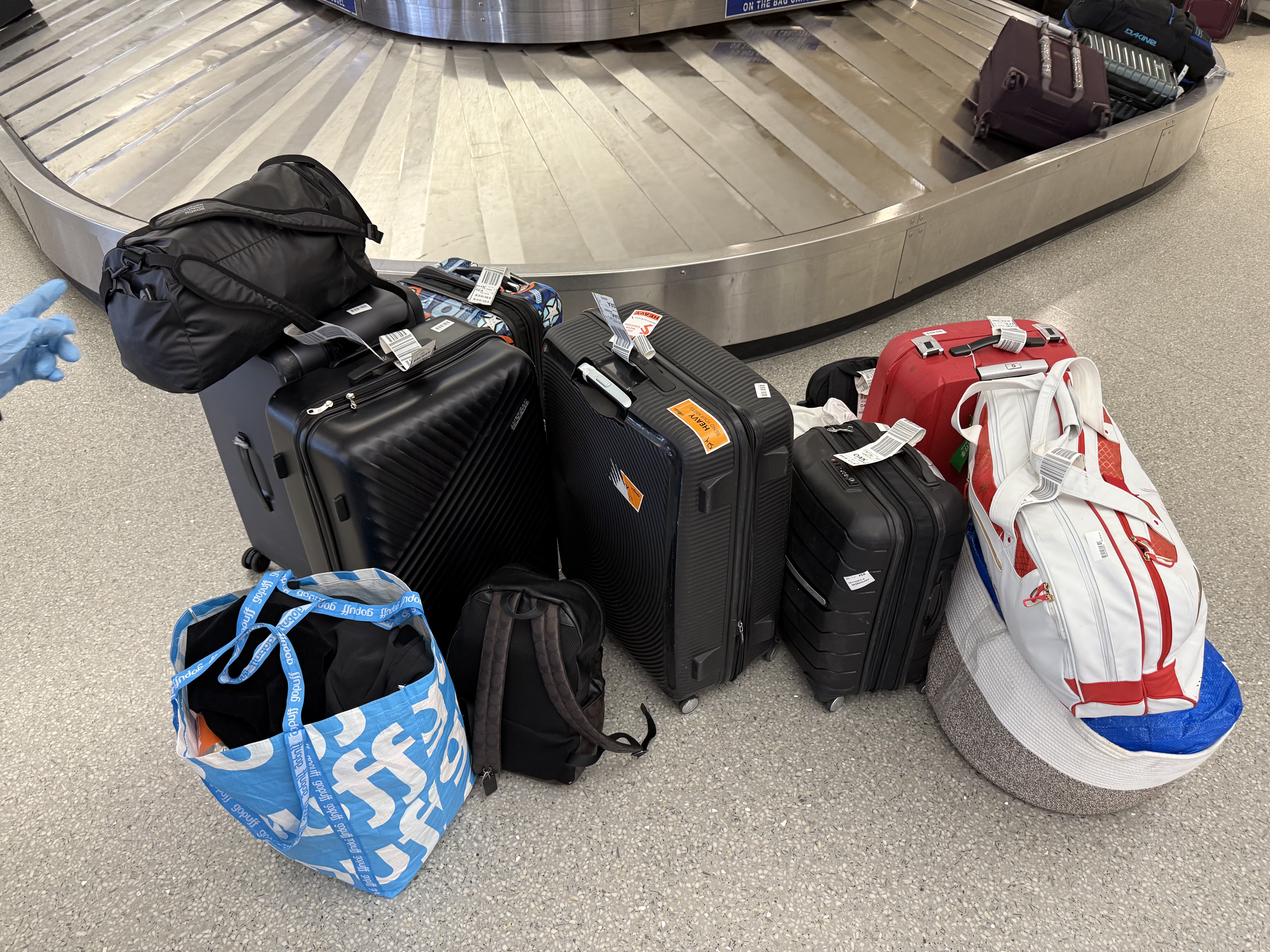 3. 因为lz之前薅了免费的AS MVP,刚好这边能换到的便宜积分票也就是AS的了,(AA直飞的一直换不出来)。三个人每人两件行李,在CI的时候一共托运了5个行李箱和一个编织袋。