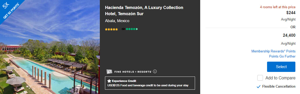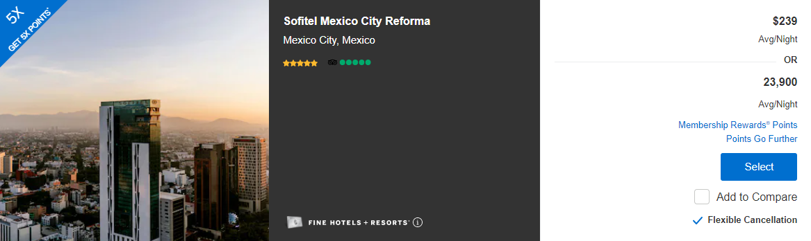 好像AmEx感觉去墨西哥的都比较不差钱,一个$200以下的都没搜到,姑且放宽到$250吧……墨西哥有首都墨西哥城的瑞吉和索菲特、梅里达的豪华精选和锡瓦塔内霍的汤普森(《肖申克的救赎》结尾Tim Robbins 就和Morgan Freeman一起幸福地生活在这里