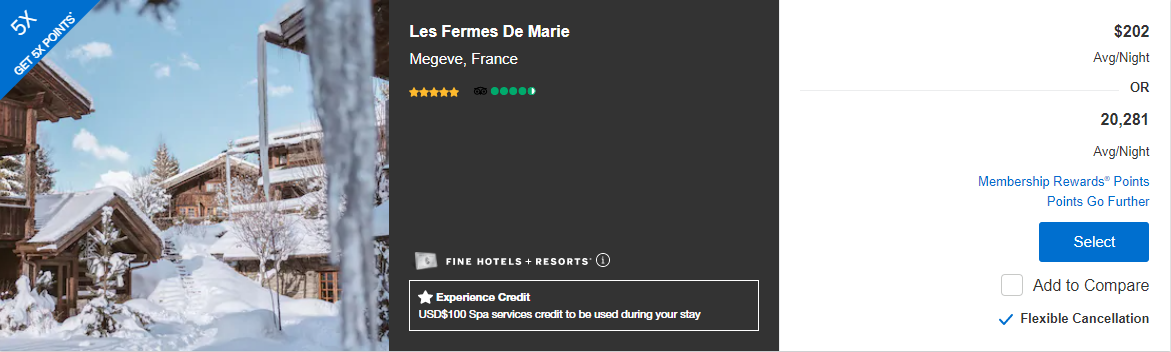 法国东部靠近瑞士边境的小镇Megeve有Les Fermes de Marie (在阿尔卑斯山Mont Blanc勃朗峰脚下,嗯,命名Mont Blanc万宝龙logo上的白色六角星就代表着勃朗峰的积雪)