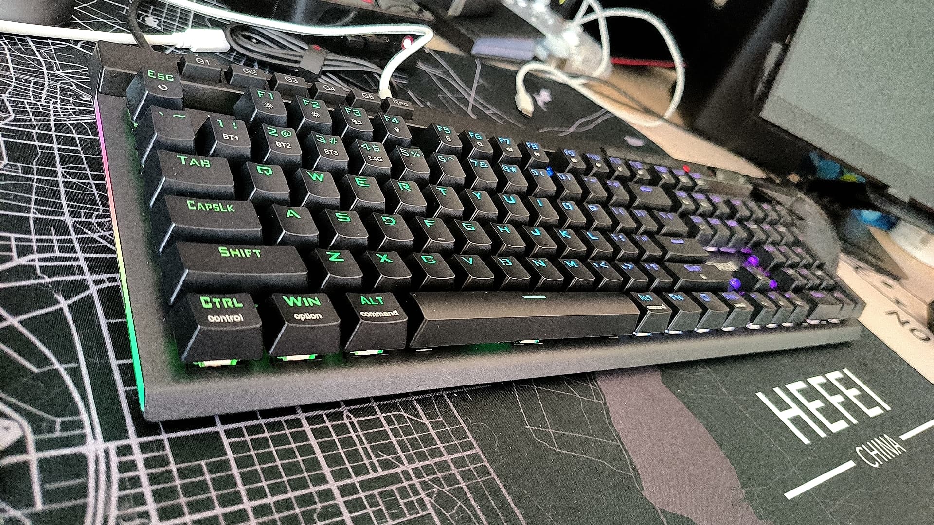 这款是redragon K580,ANSI full size,只要65(是我手上第6副键盘,给手上第7台电脑配的,支持多输入端,可以和第5台电脑共用。