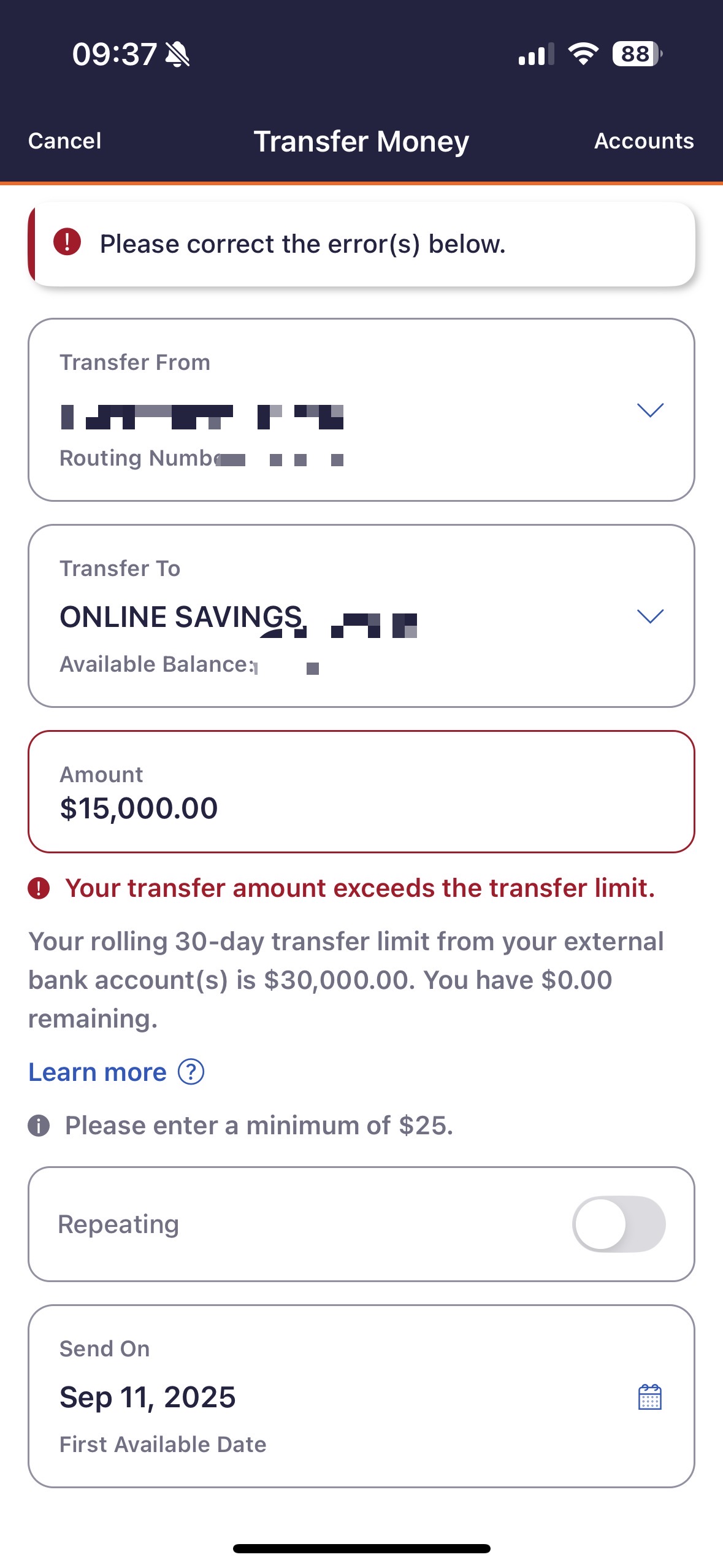 就是schedule一个当天的转出,然后立刻取消,discover的系统会把这个取消的transaction当做money in