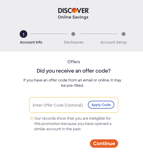 Our records show that you are ineligible for this promotion because you have opened a similar account in the past.