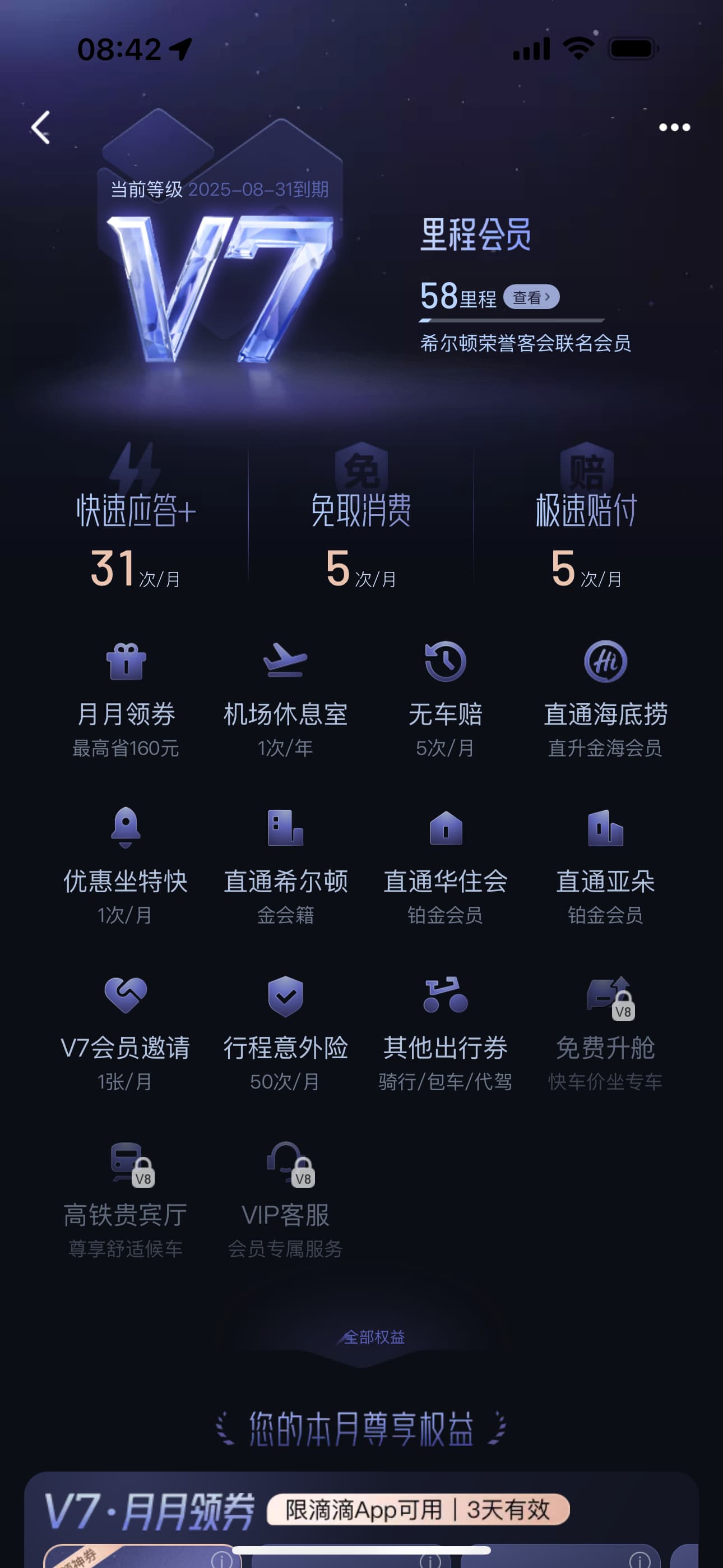 这个滴滴V7真有点东西的,虽然除了可以手动领几张8折券,没有说有其他价格优惠,但我怀疑会影响定价。