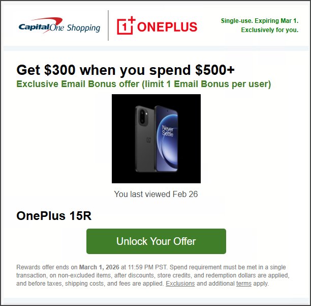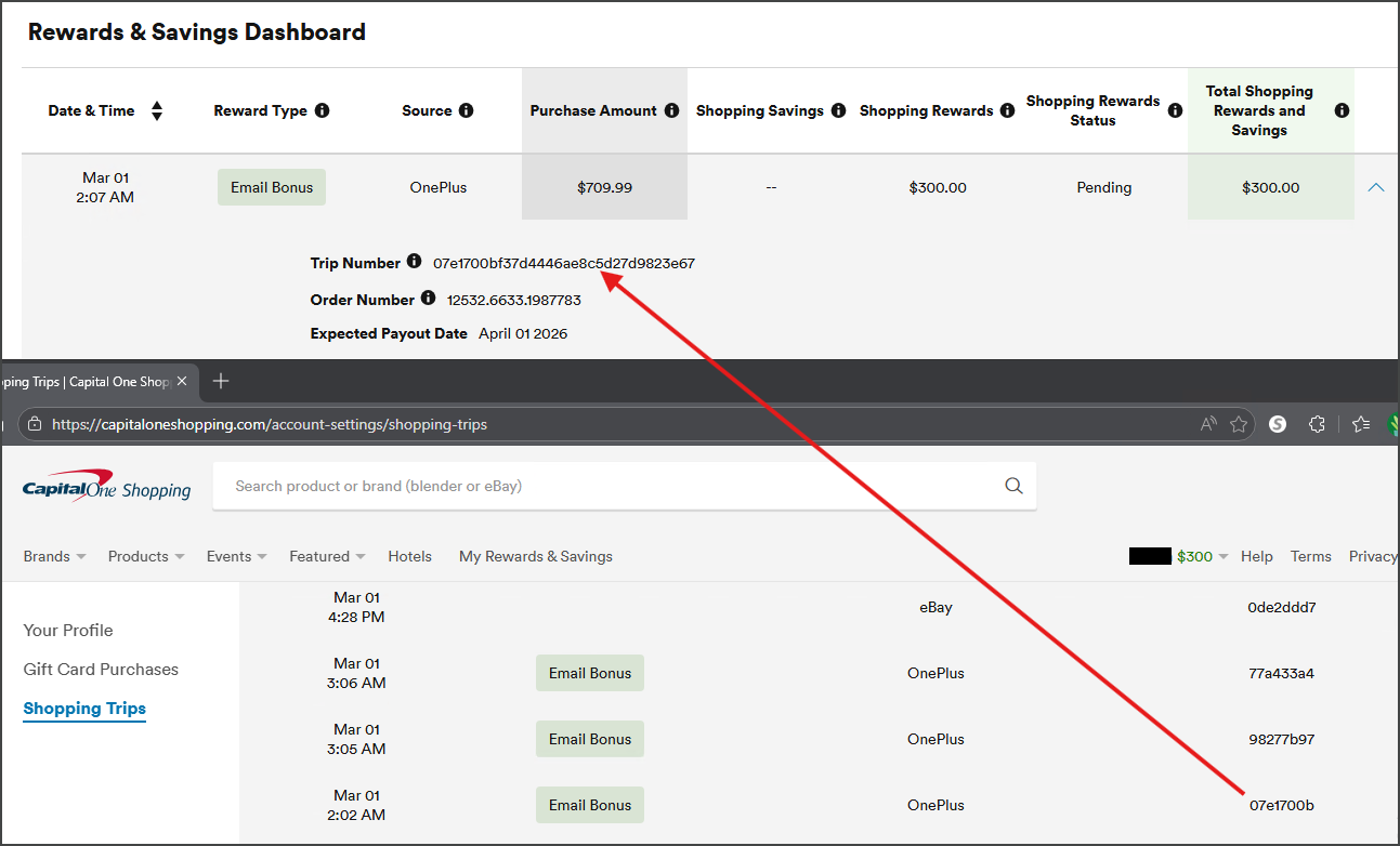 潭友们,成功track到了,但是这个订单很快就取消了,因为填错了地址,而且选错了offer,有个返390的OnePlus 15(没R) offer。后面新下的订单产生了两个shopping trips,一个是点的邮件链接,另一个大概是插件弹出相同offer生成的,都还没转到Rewards & Savings Dashboard。这种情况还能track到吗?新下的订单已经发货。