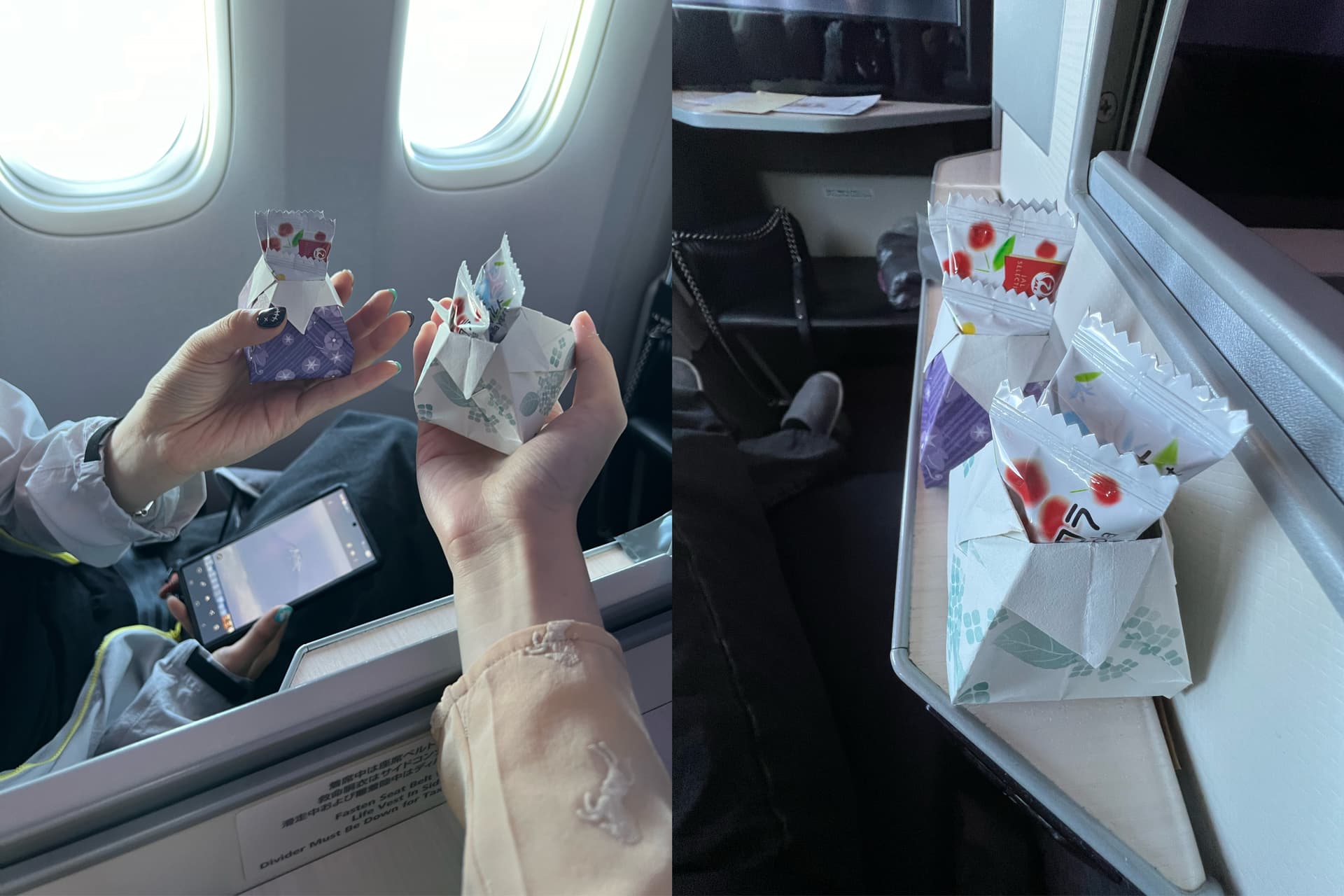 临期还选了两张5排靠左,独占三个窗和整个小隔舱,经过富士山的时候空姐拿来糖果送我们