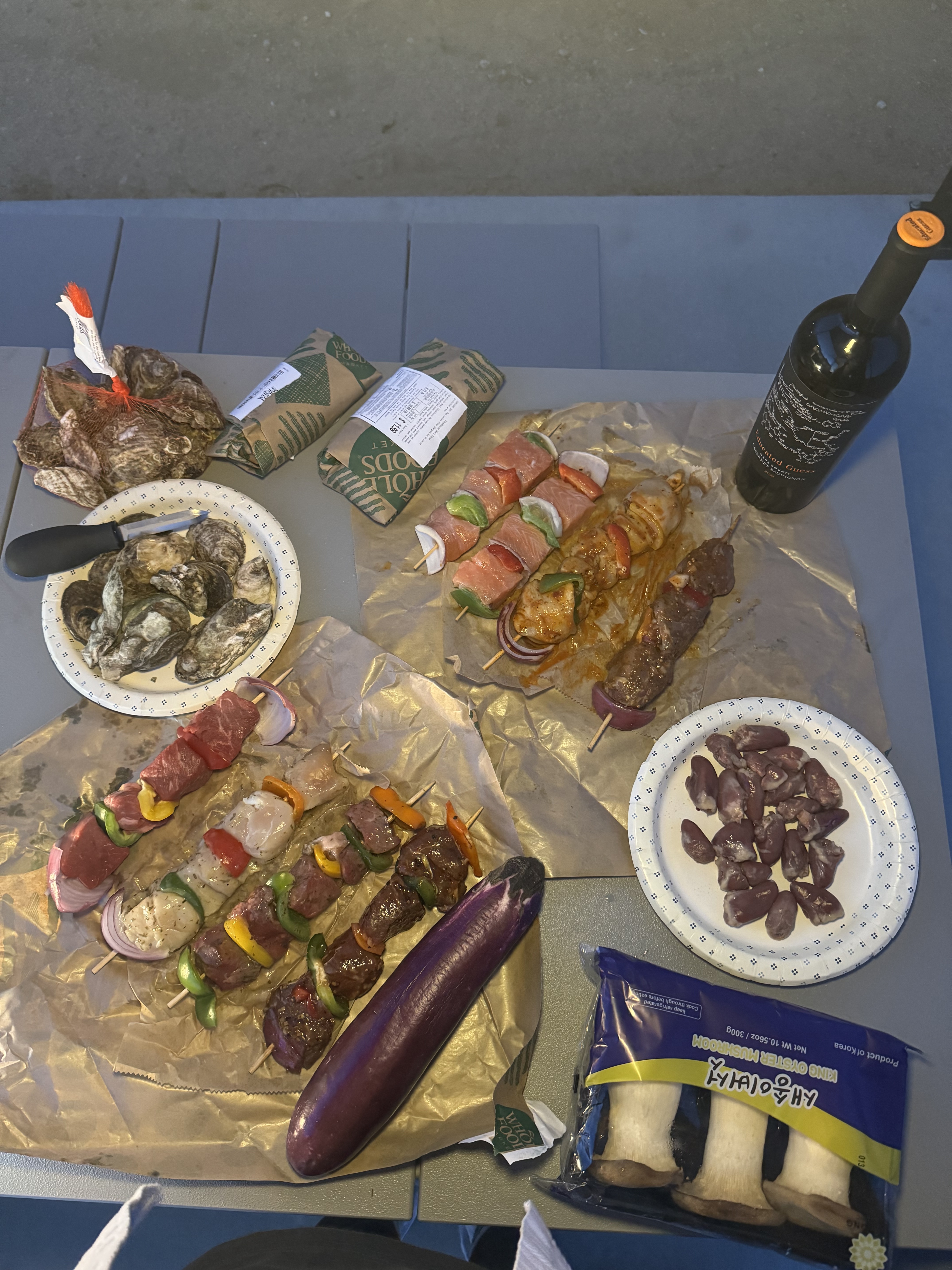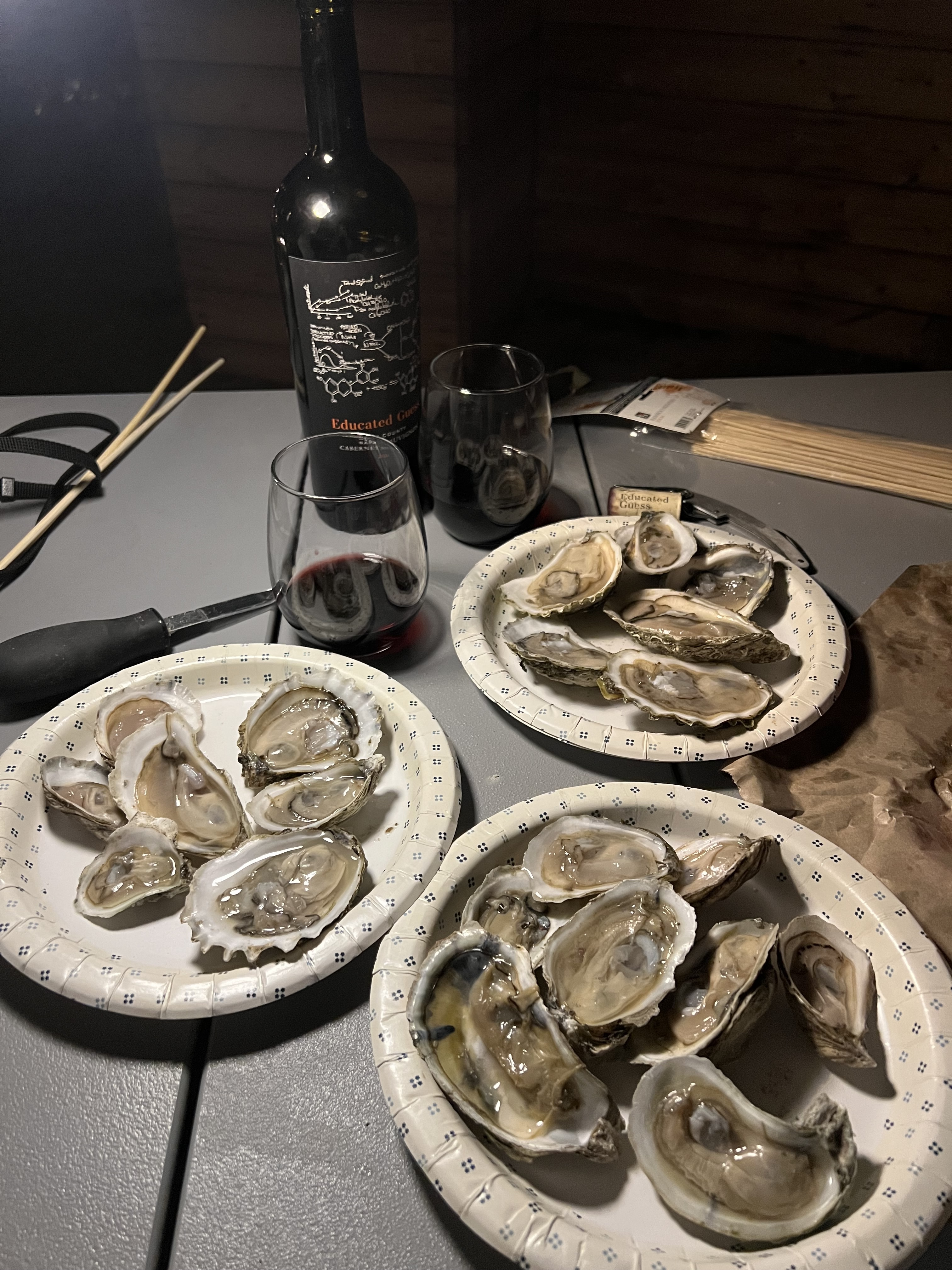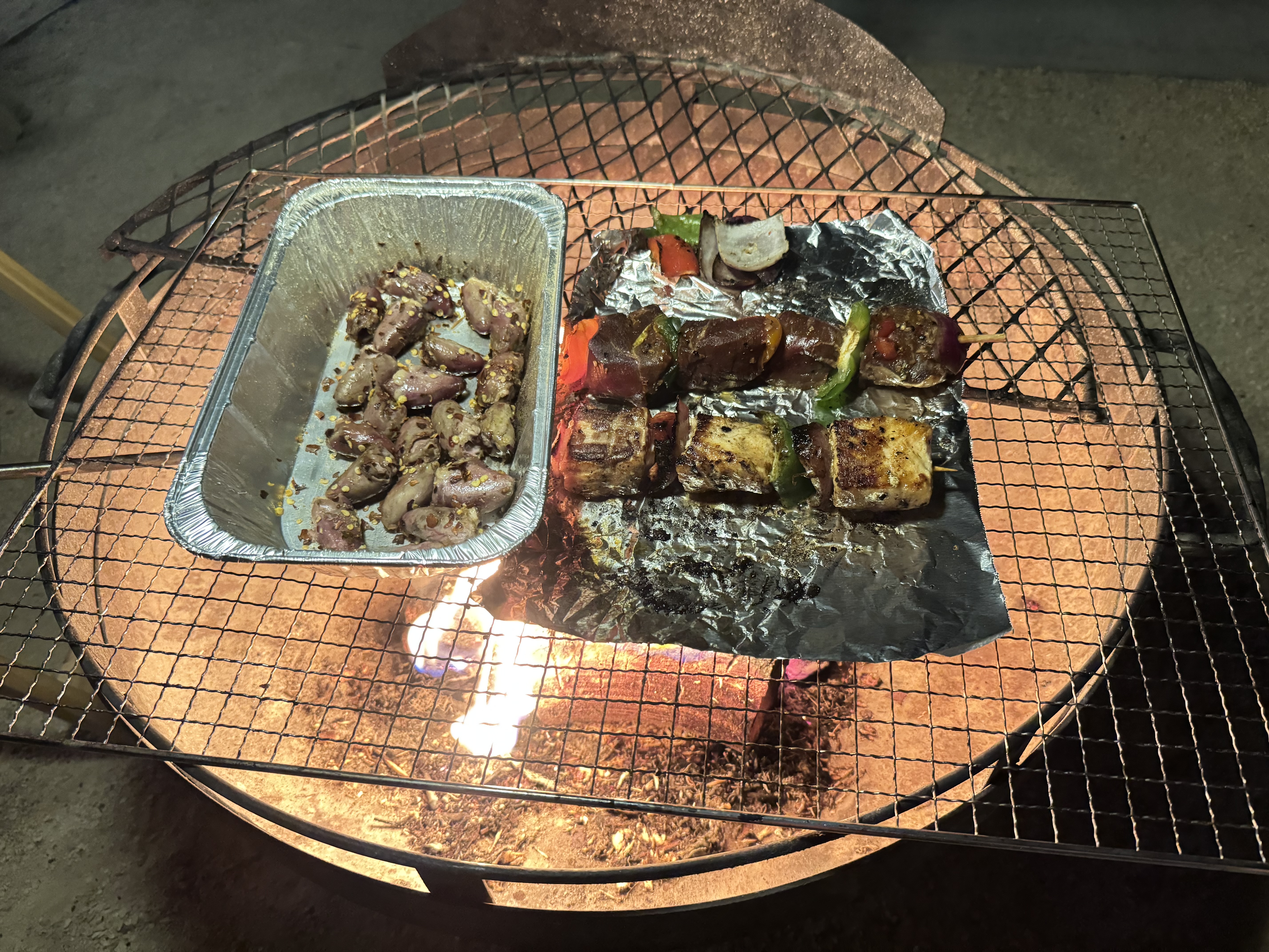 一包碳大概烧了一个半小时?想在外面多待一会儿的话建议直接多买一包碳,不然晚上去大堂路上一点灯没有还是挺黑的。每次点吃的都是眼大肚皮小,两个人连一半都没有吃完