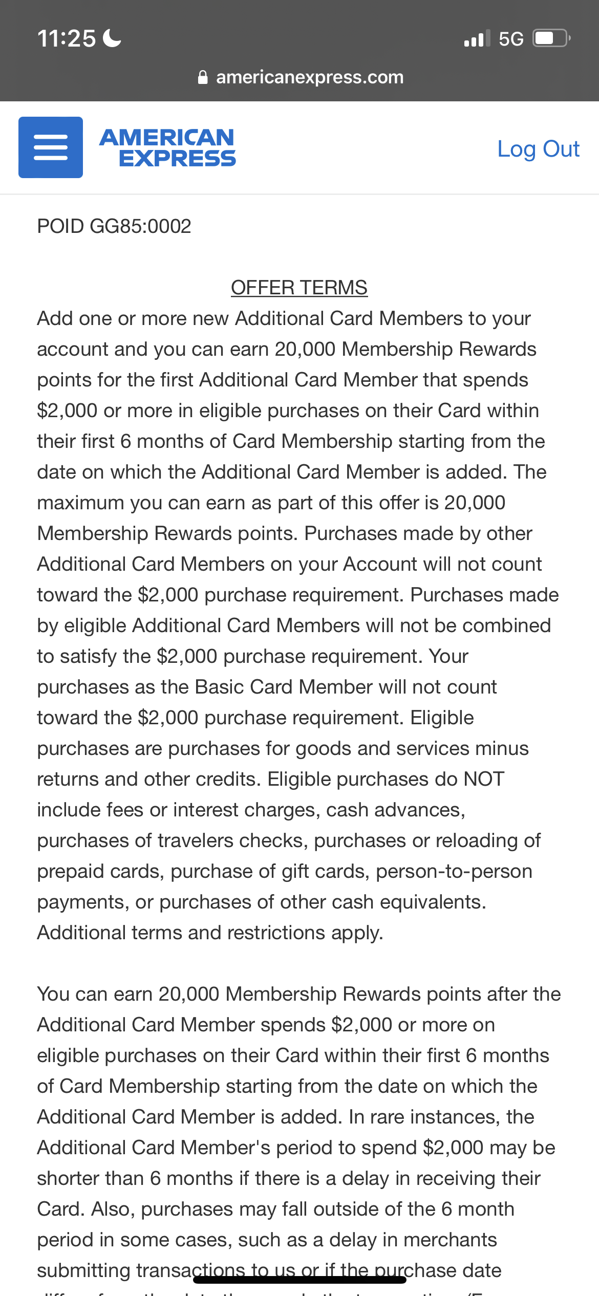 我之前有收到邮件 添加副卡消费2000拿2万分 不需要code。我直接在账户上添加副卡 下面就有offer term。所以好奇怪啊 我没有输入任何东西。直接点添加副卡 就可以看见这个offer bonus