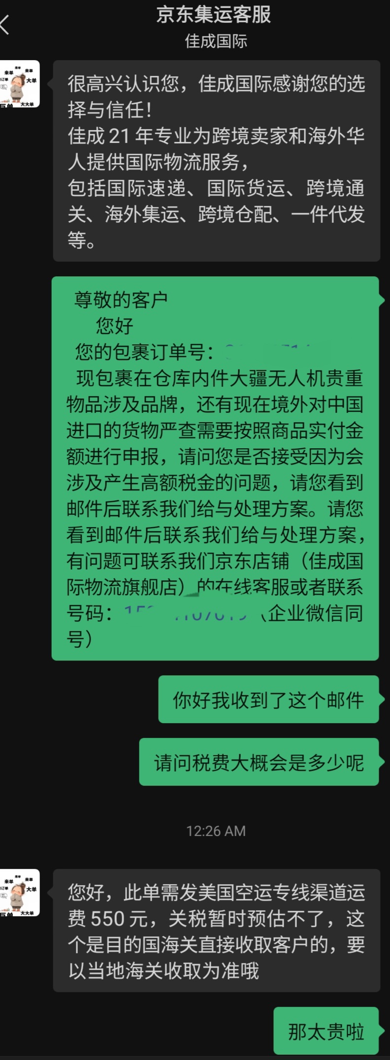 后来用了佳成空运,直接送到了,包关税包手续费,运费很贵就是