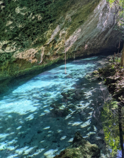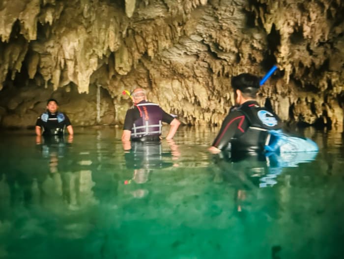 強力推薦 Cenotes Sac Actún。雖然貴一些$60/per person(需要湊滿一定小團人數)包含救生背心,防寒衣,浮潛鏡還有一小時專人帶領講解。那天有幸運女神加持, 只有我們加另外一對夫妻。完全Private玩法。導遊非常專業會講解許多細節,也會協助拍合照。也慶幸最後一天有來這!