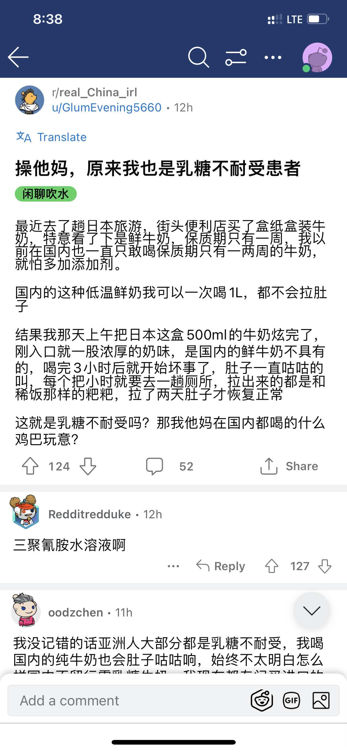 我以前以为我也是乳糖不耐,后来发现其实欧美的牛奶煮开后再喝就没问题了,估计肠胃对某些蛋白过敏