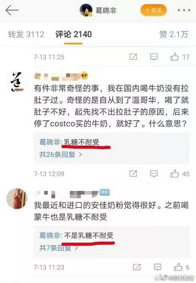好像中国的奶都会先处理一下乳糖,因为中国人乳糖不耐受太普遍了,忘了在哪里看到的。