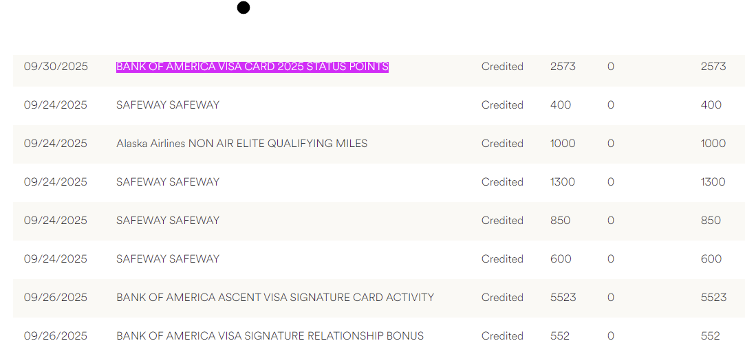 as从safeway转的,和boa信用卡给的status point,没有人说过是一起到账的,信用卡给的status point要晚很多,等着就完事了