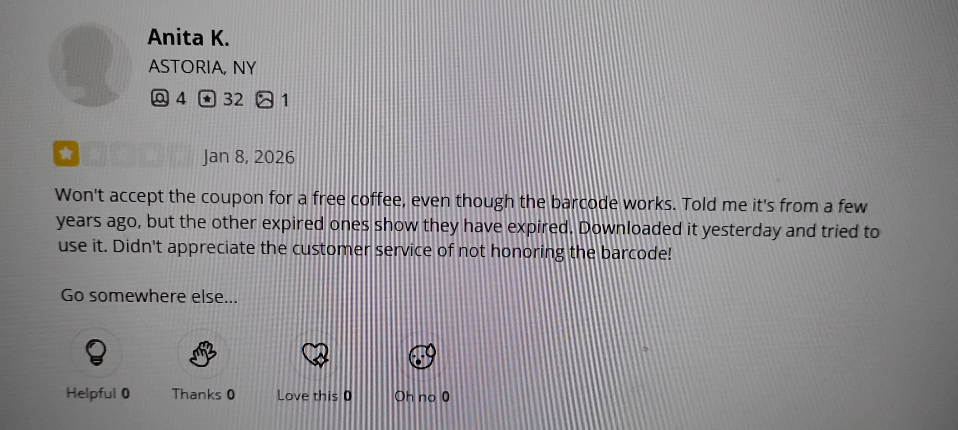 难道那我被针对了?但是我也不是第一个被告知不收coupons。 也不是经常去,偶尔才去一次。